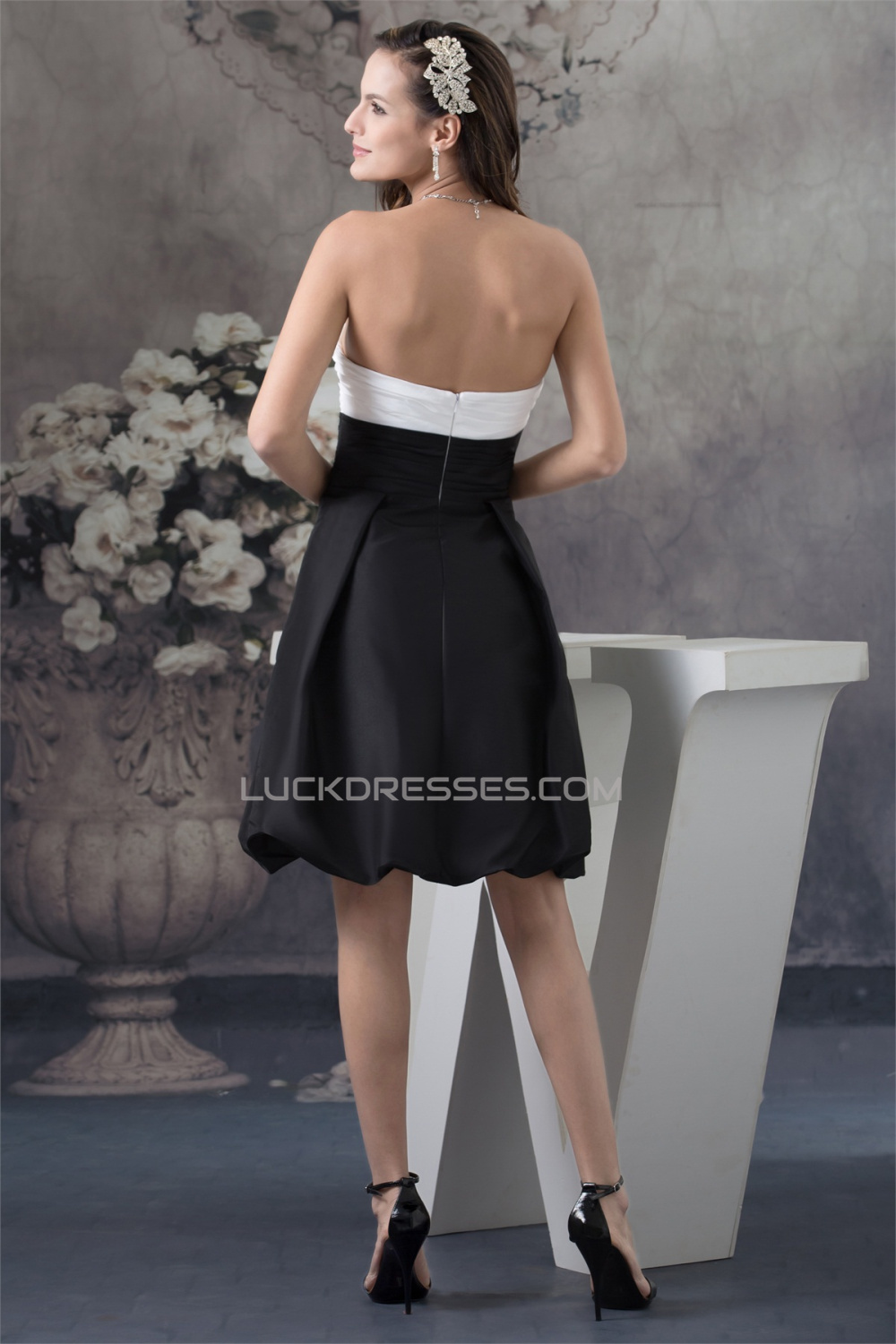 A-Line Knee-Length Strapless Sleeveless Black White Bridesmaid Dresses 02010387