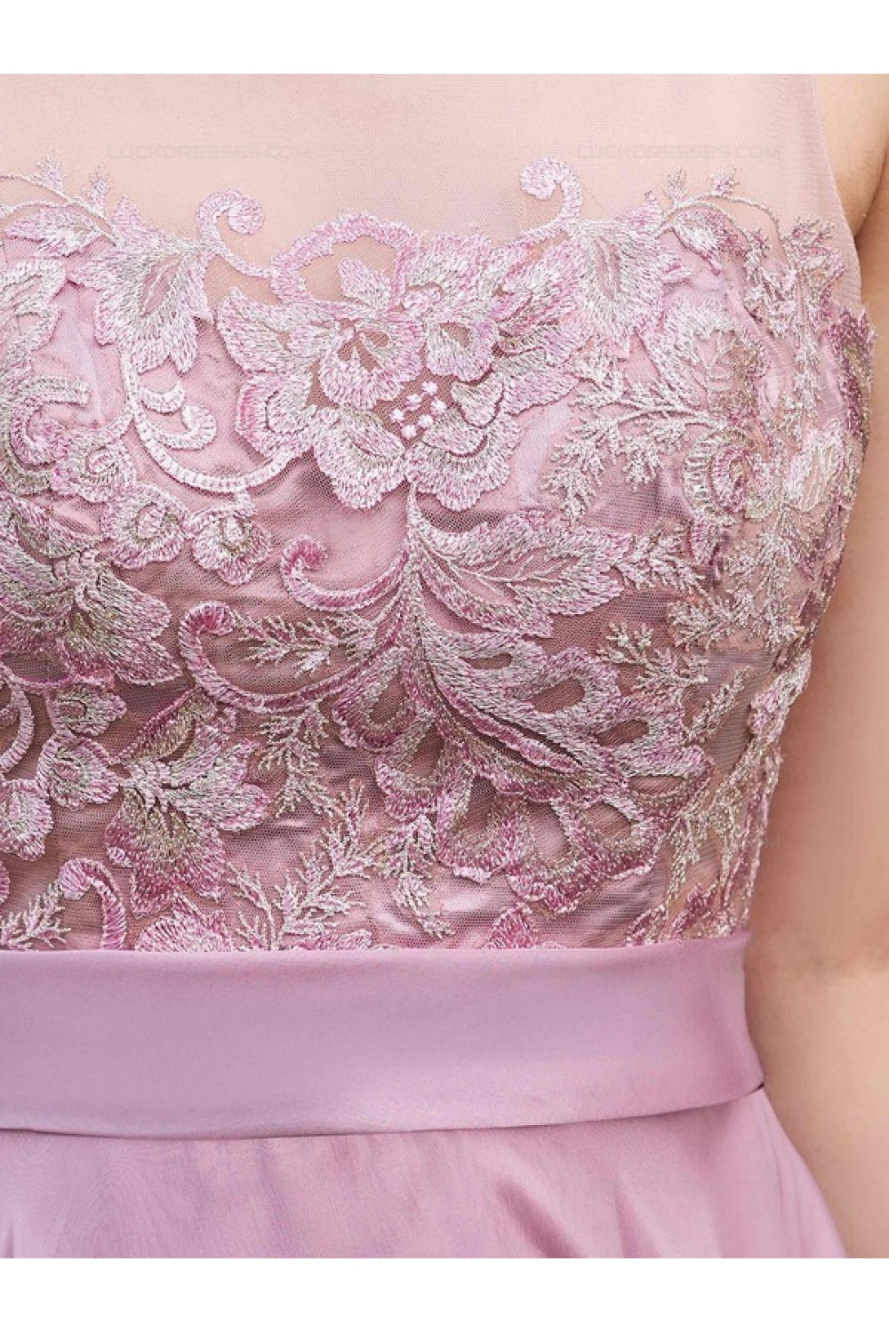 A-Line Lace Chiffon Illusion Neckline Short Wedding Guest Dresses Bridesmaid Dresses 3010220