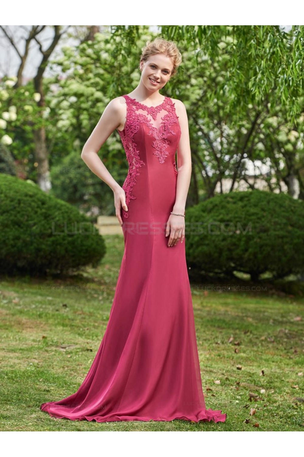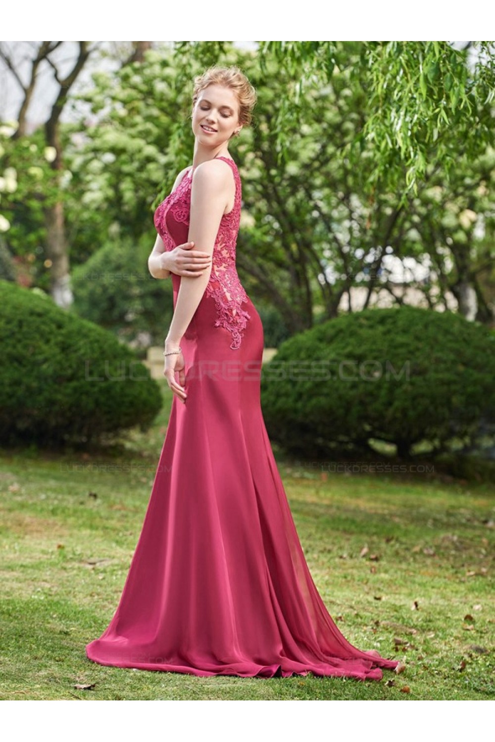 A-Line Lace Chiffon Long Wedding Guest Dresses Bridesmaid Dresses 3010248