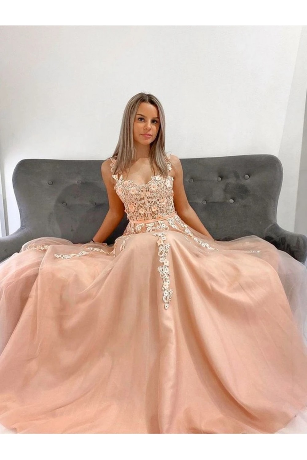 A-Line Lace Long Prom Dresses Formal Evening Gowns 901086