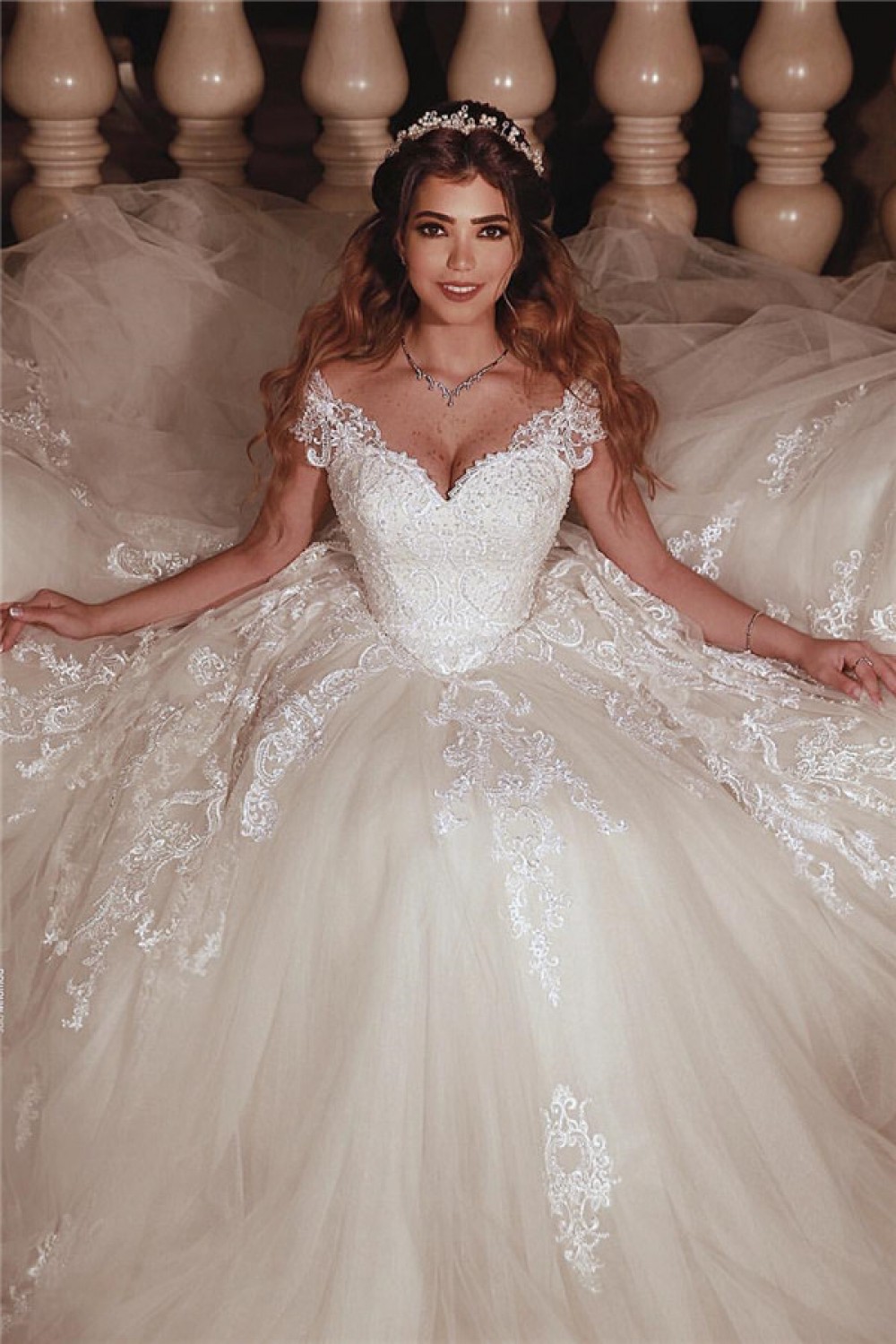 A-Line Lace Off the Shoulder Wedding Dresses Bridal Gowns 903295