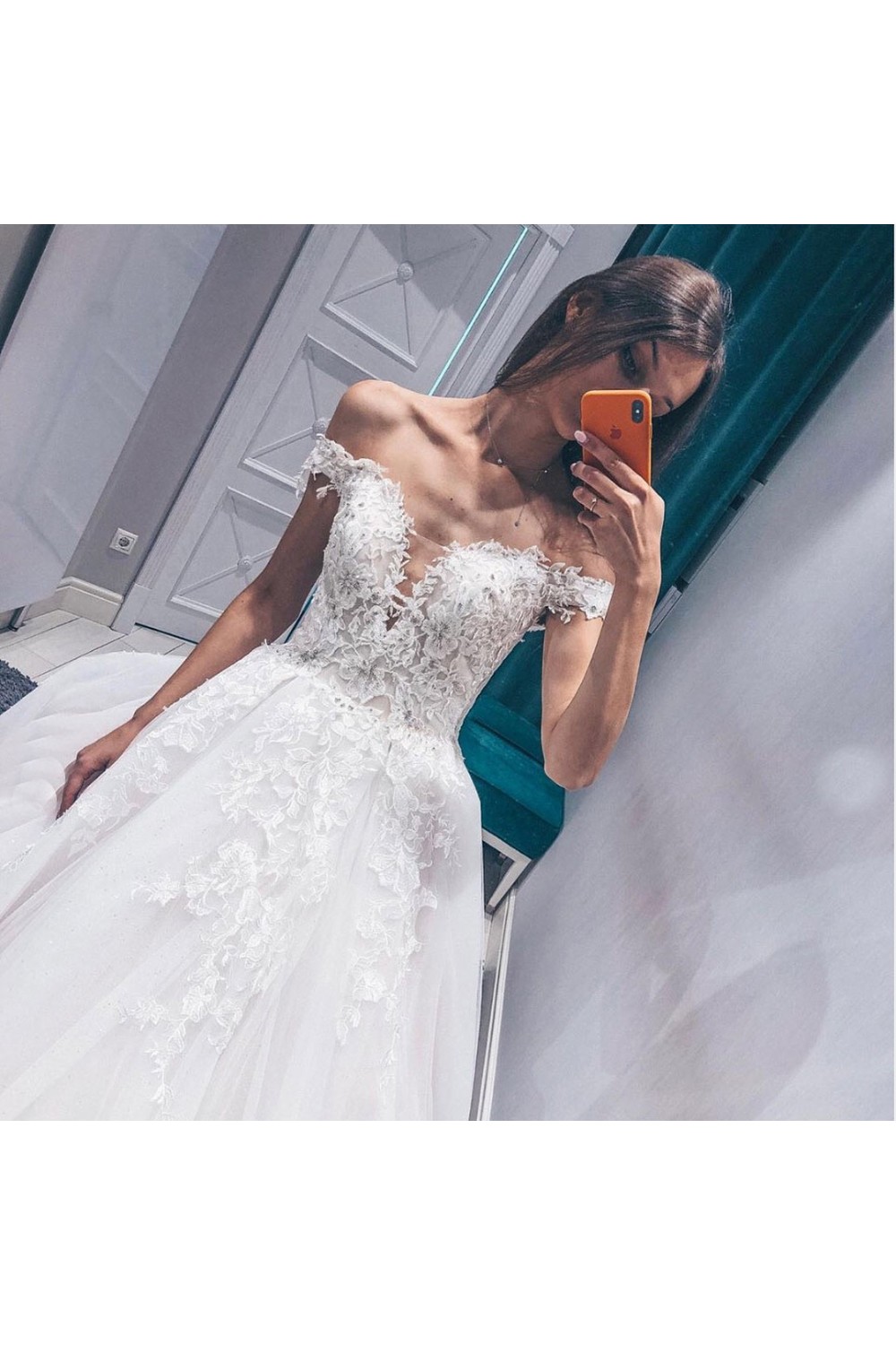 A-Line Lace Off the Shoulder Wedding Dresses Bridal Gowns 903298