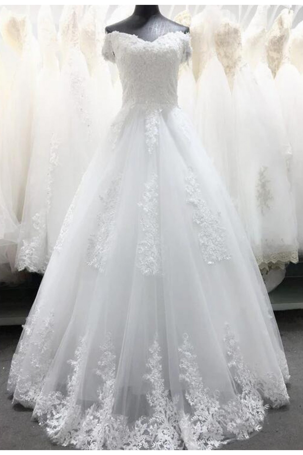 A-Line Lace Off the Shoulder Wedding Dresses Bridal Gowns 903439
