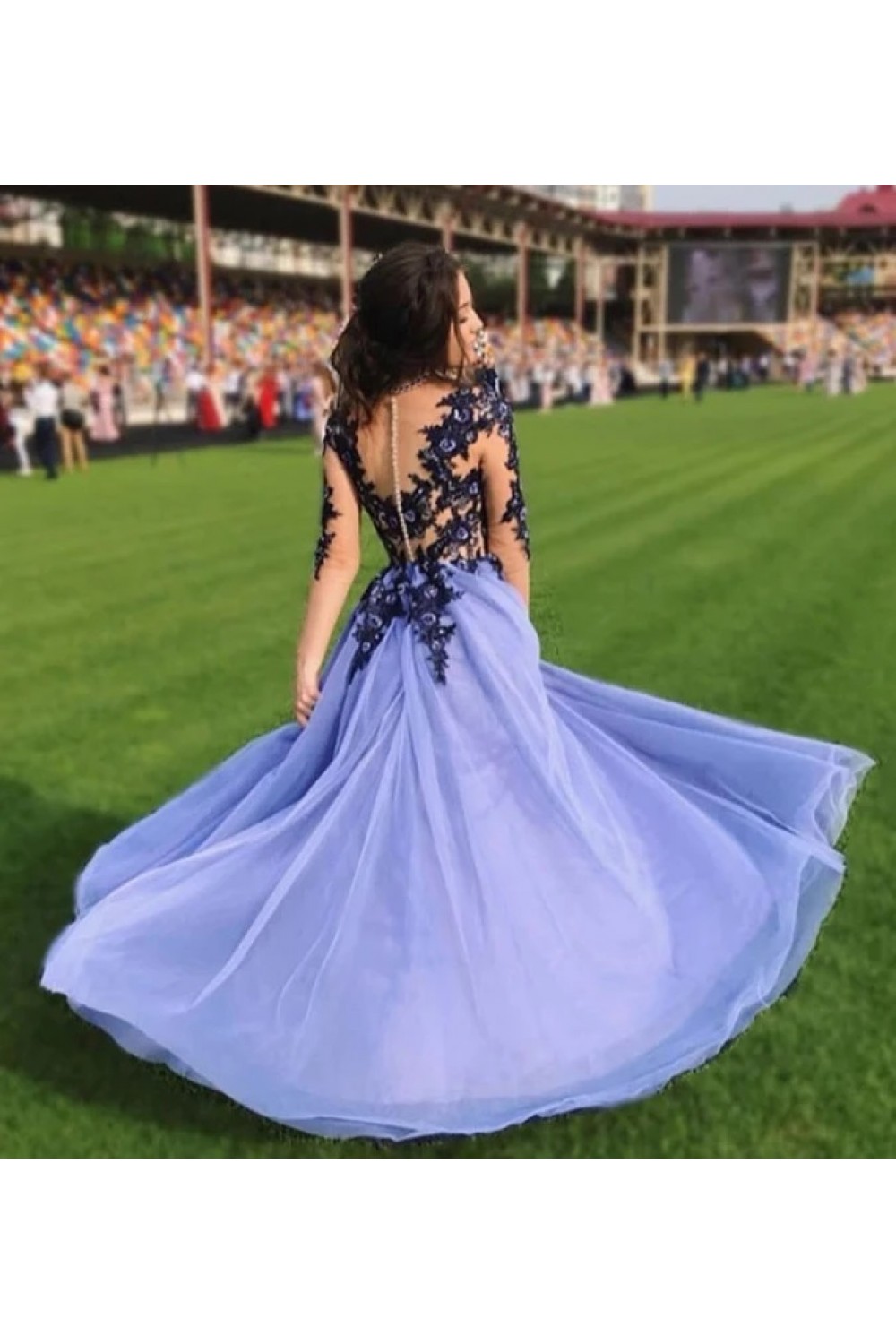 A-Line Lace Tulle Long Prom Dresses Formal Evening Gowns 6011609