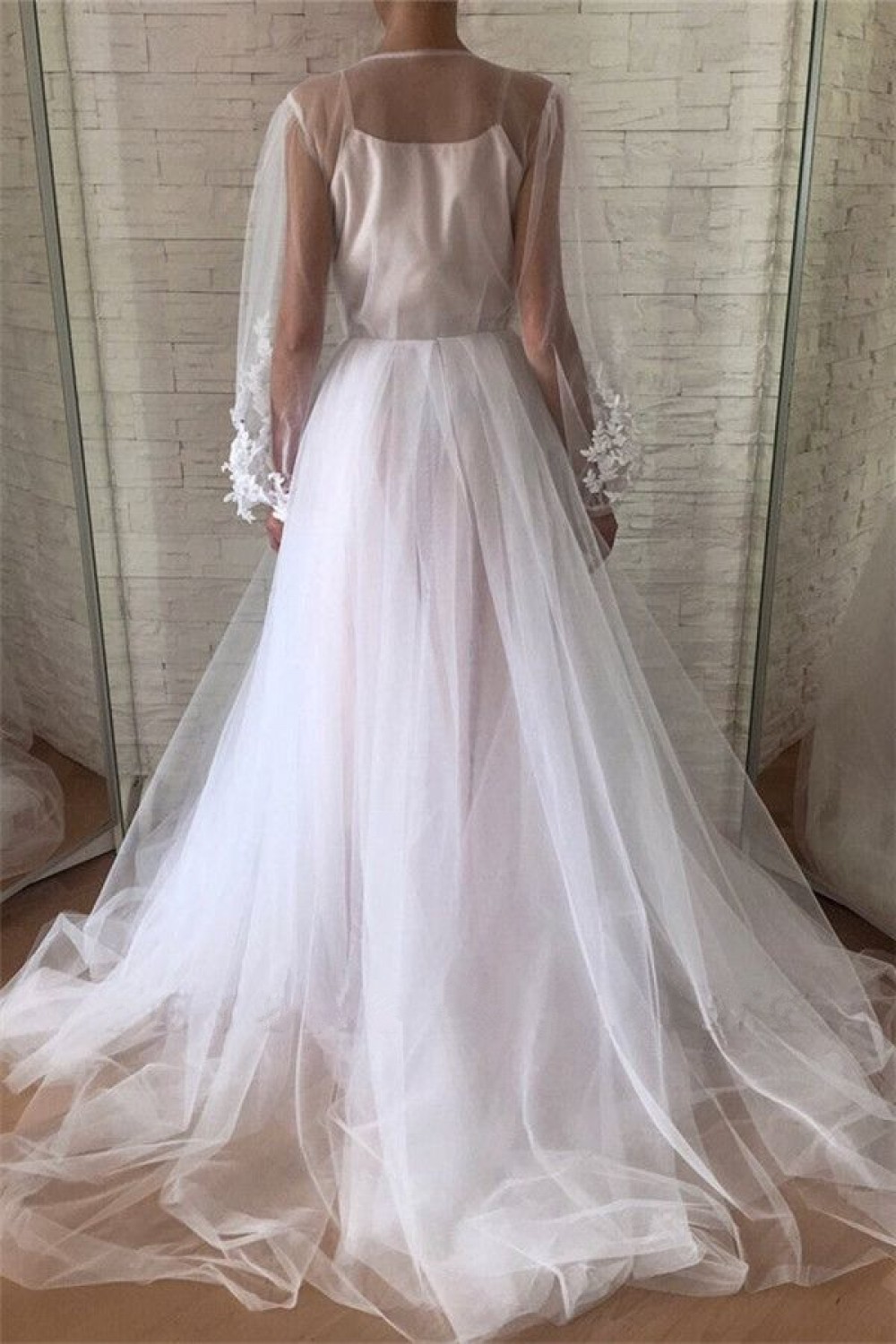 -61% A-Line Lace Tulle Long Sleeves Prom Dress Formal Evening Dresses 601769
