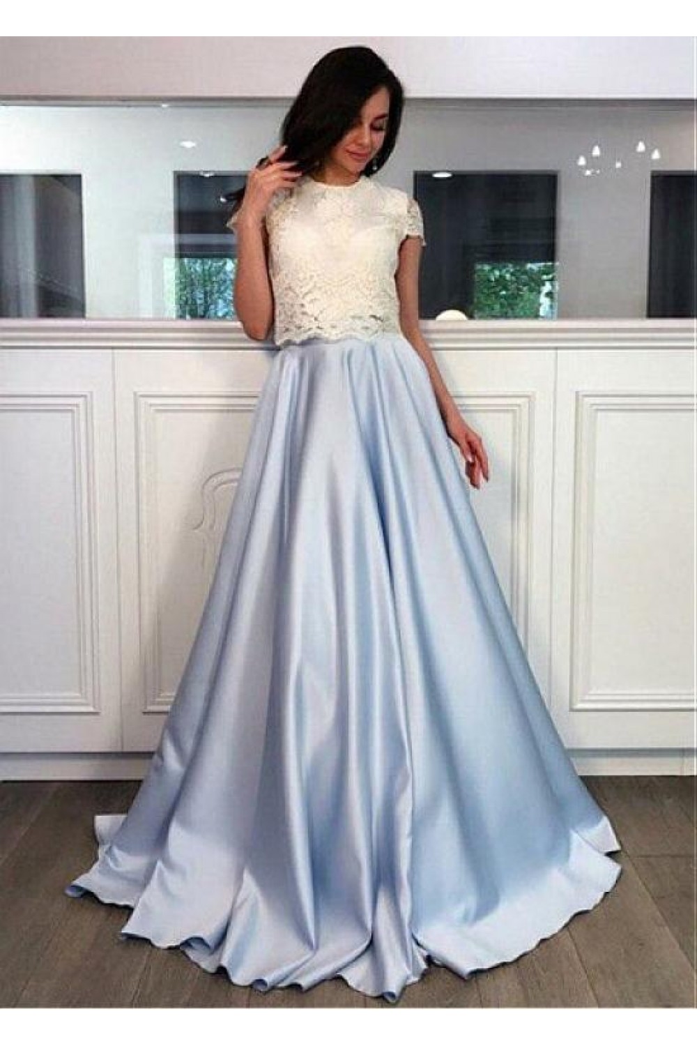 A-Line Lace Two Pieces Long Prom Dresses Formal Evening Dresses 601342