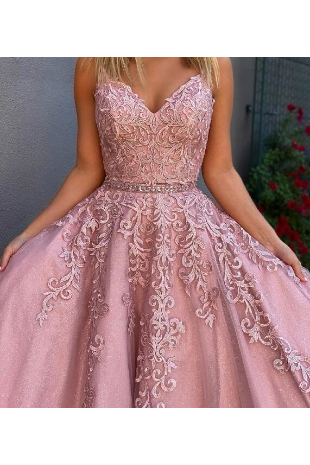 A-Line Lace Two Pieces Long Prom Dresses Formal Evening Gowns 6011140