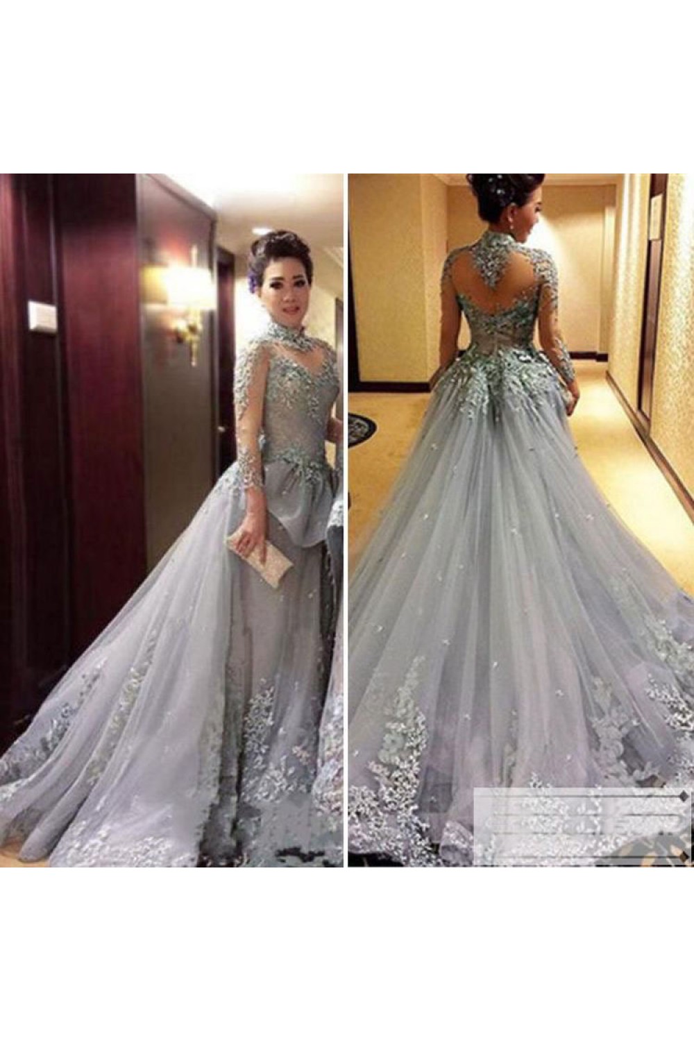 A-Line Lace and Tulle Long Mother of the Bride Dresses 702146