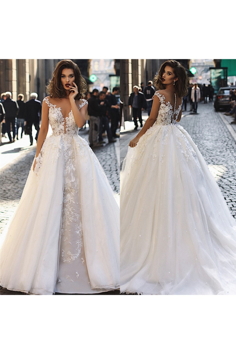 A-Line Lace and Tulle Long Wedding Dresses Bridal Gowns 903361