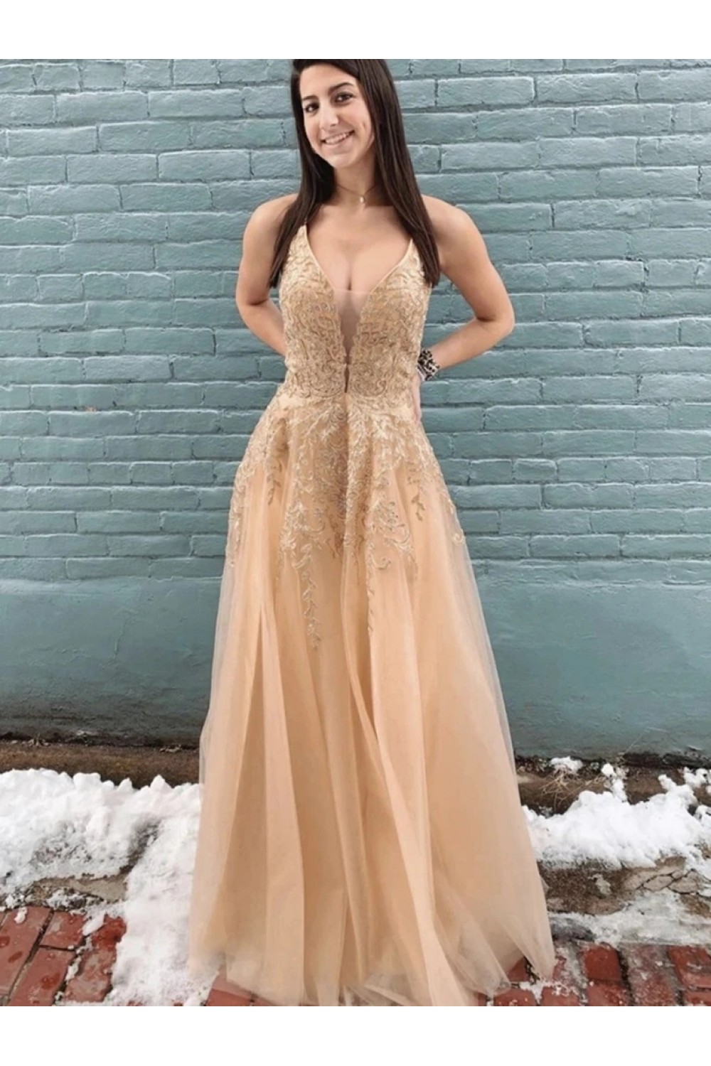 A-Line Lace and Tulle Prom Dress Formal Evening Gowns 901222