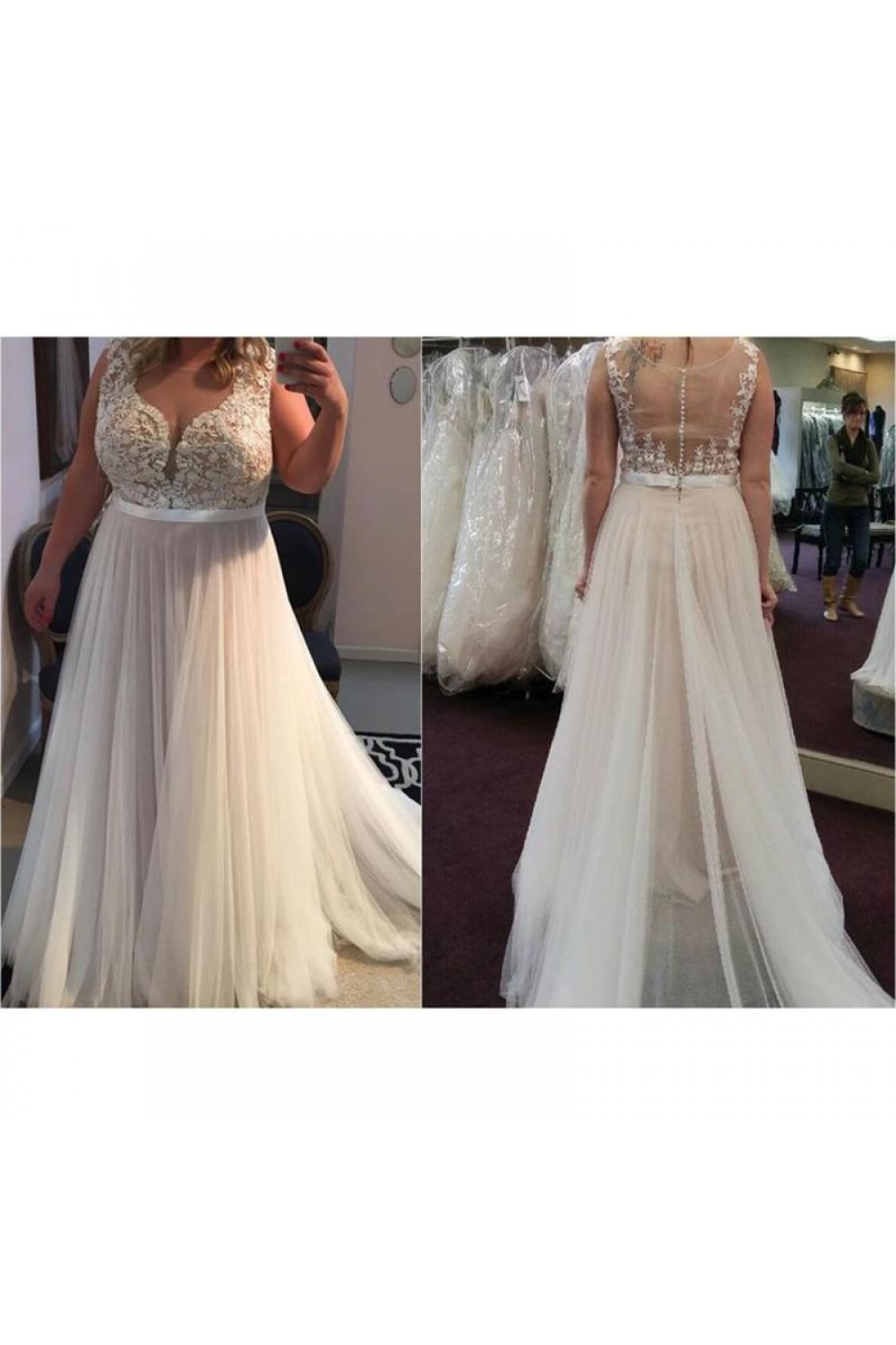 A-Line Lace and Tulle Wedding Dresses Bridal Gowns 903268