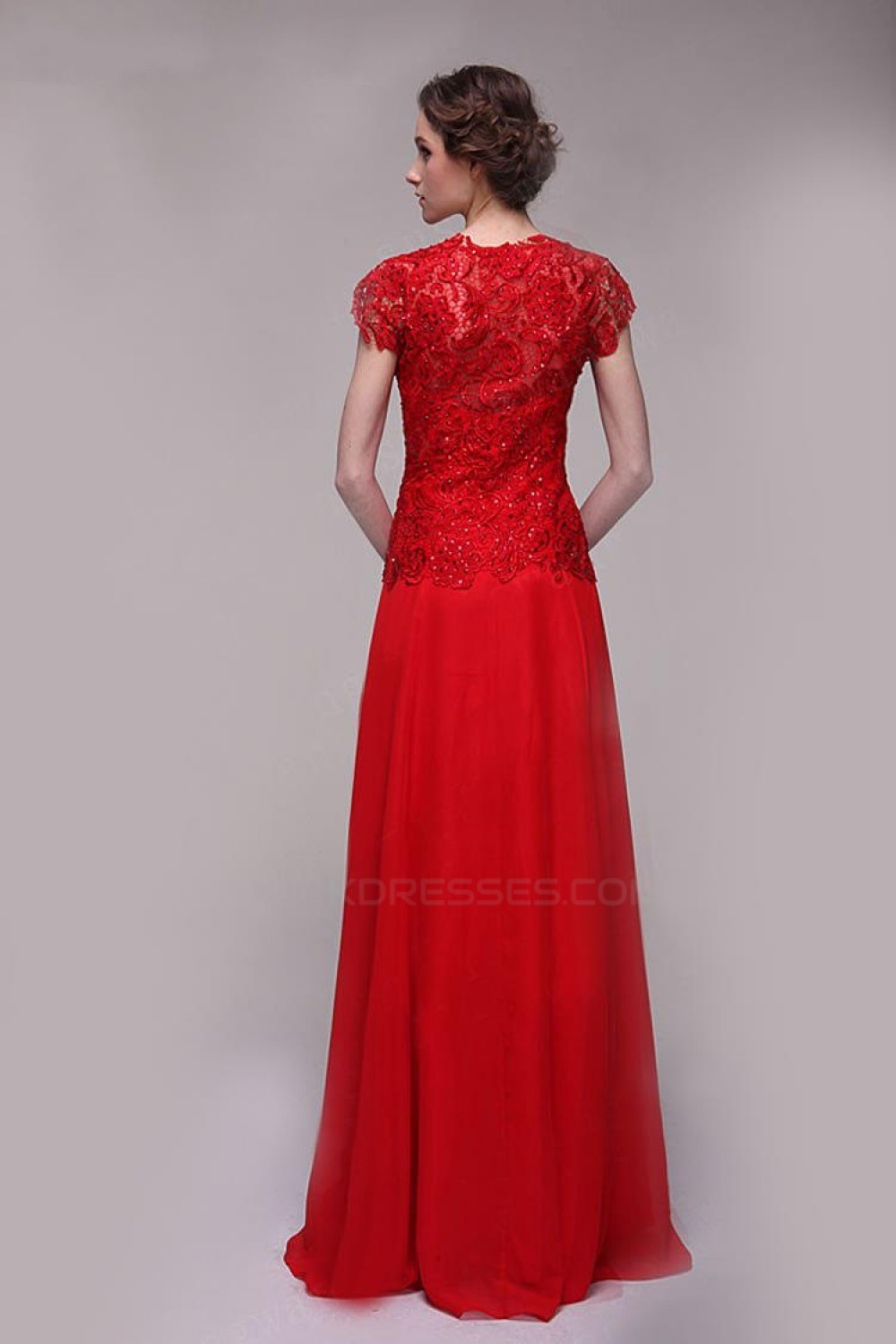 A-Line Long Beaded Red Chiffon Prom Evening Formal Party Dresses ED010527