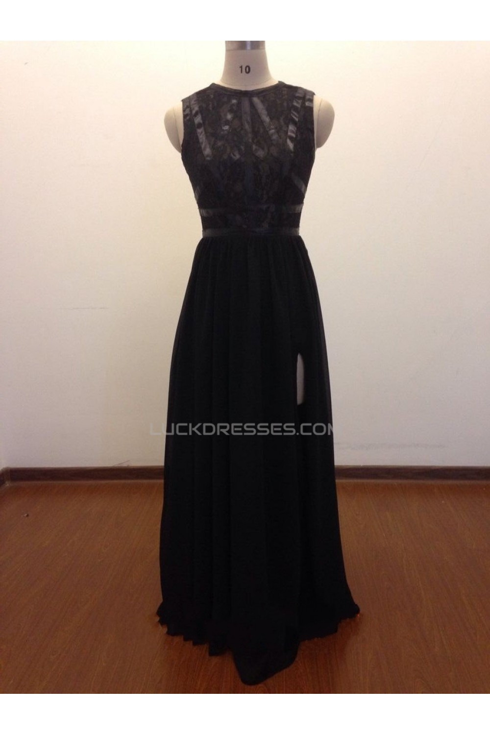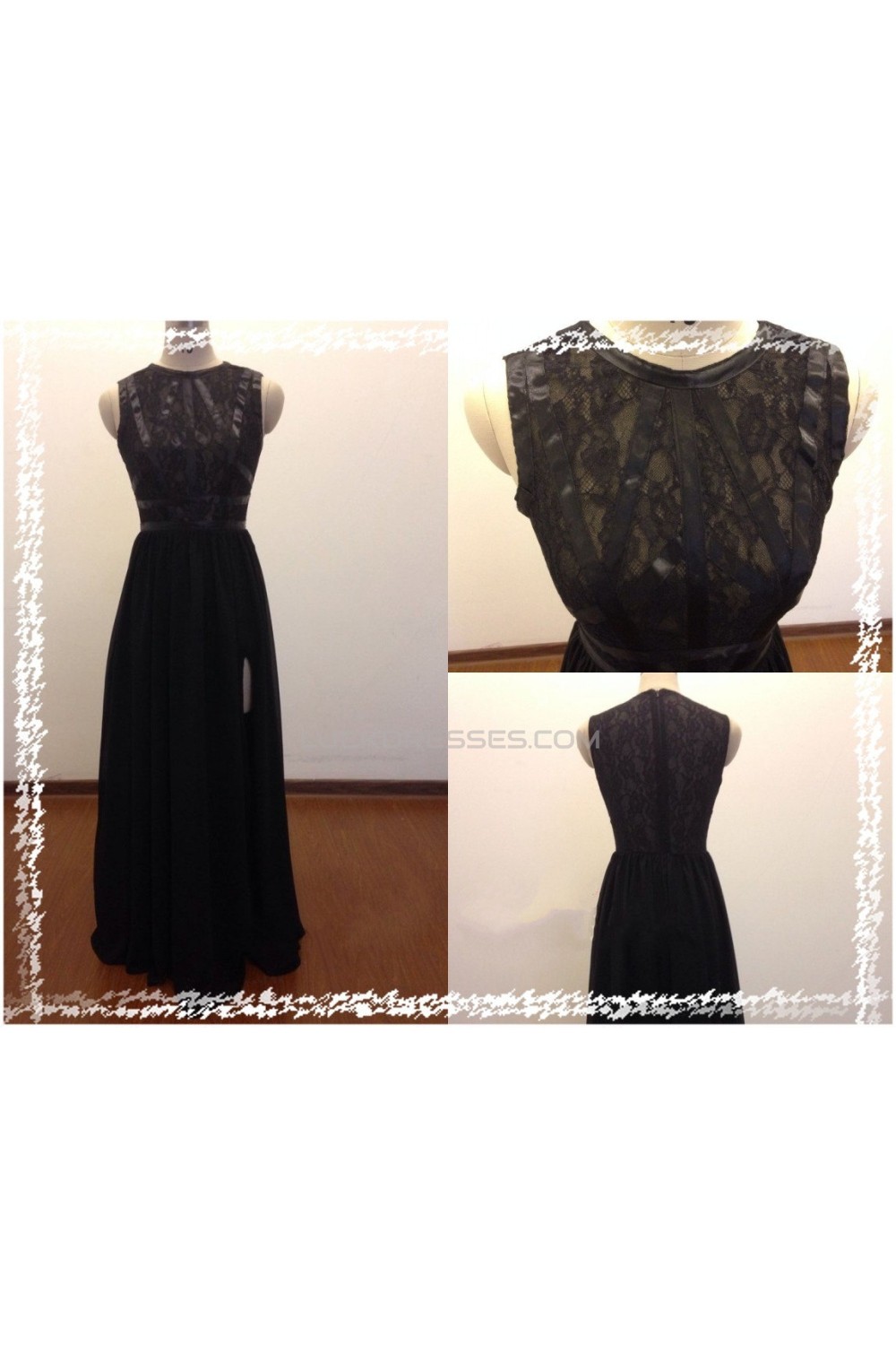 A-Line Long Black Lace and Chiffon Prom Evening Formal Dresses ED011469
