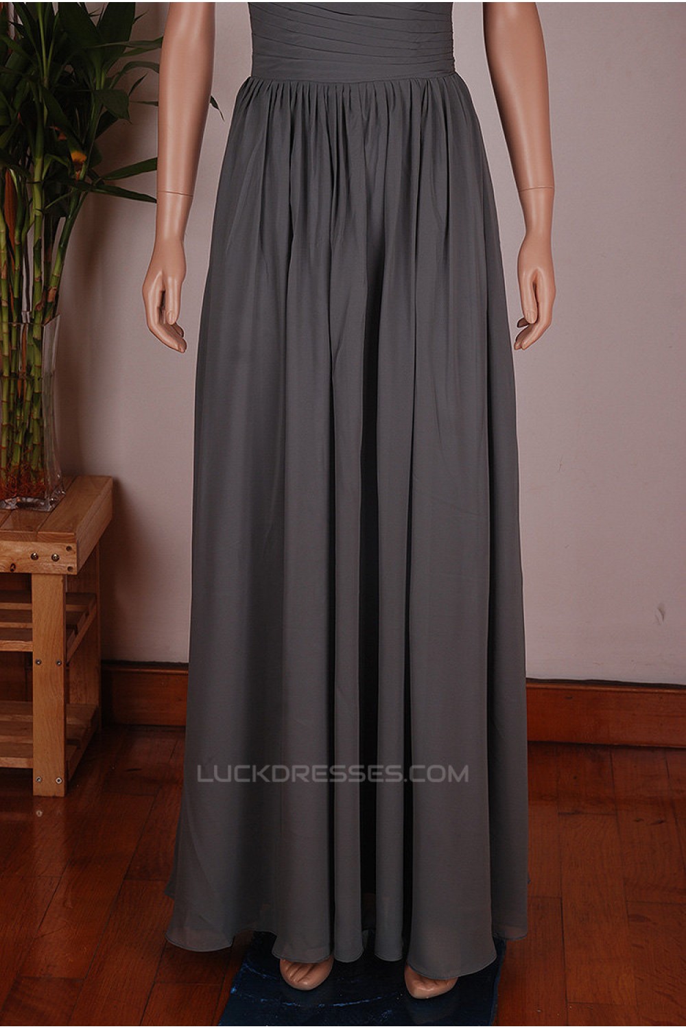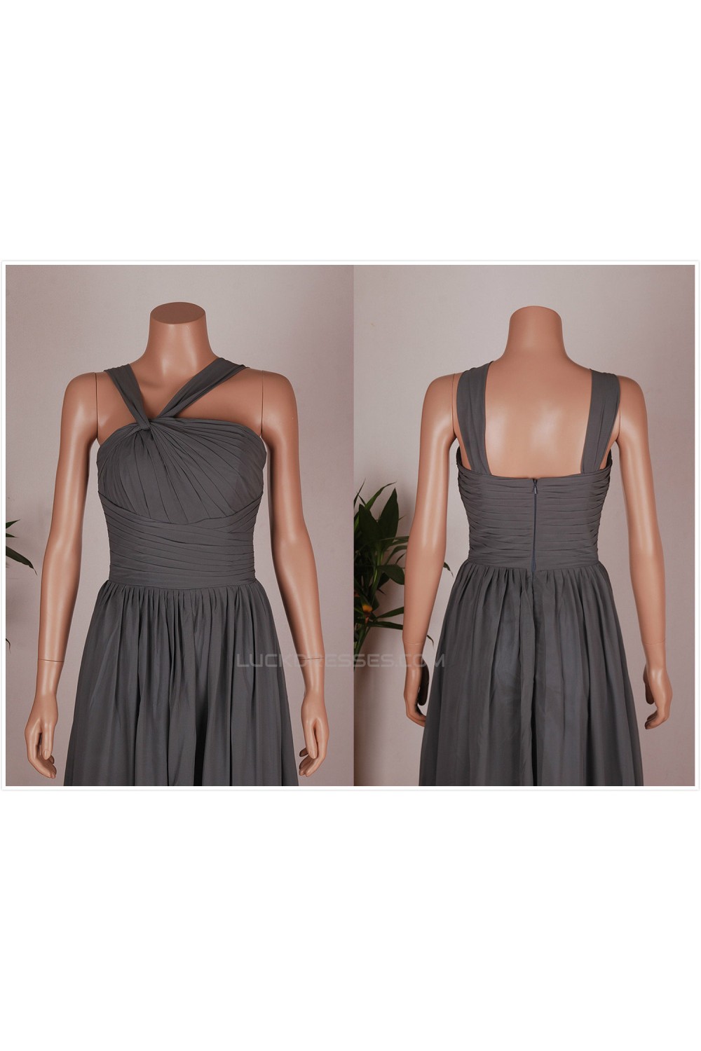 A-Line Long Grey Chiffon Bridesmaid Dresses/Wedding Party Dresses BD010677