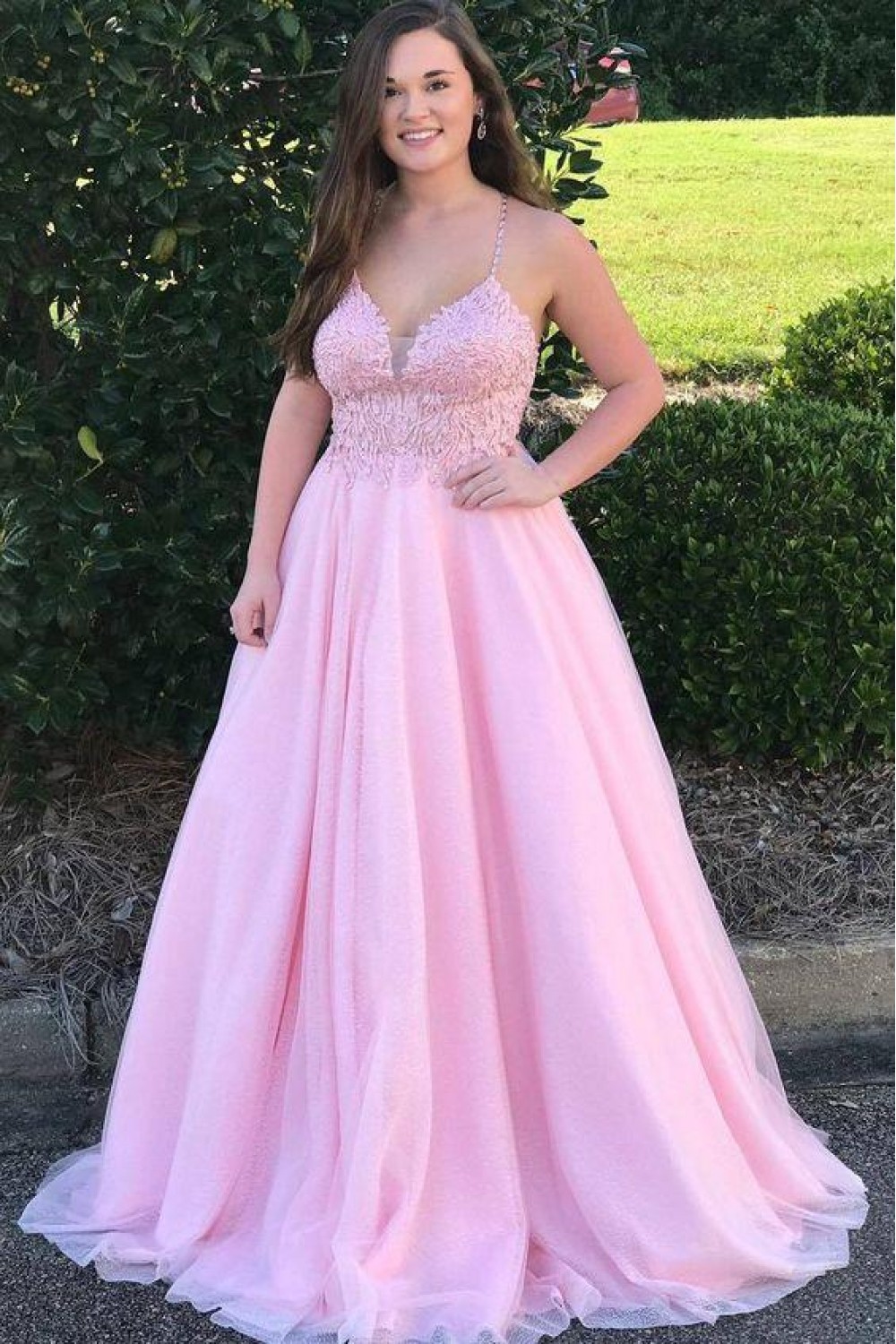 A-Line Long Pink Lace Prom Dress Formal Evening Gowns 901344