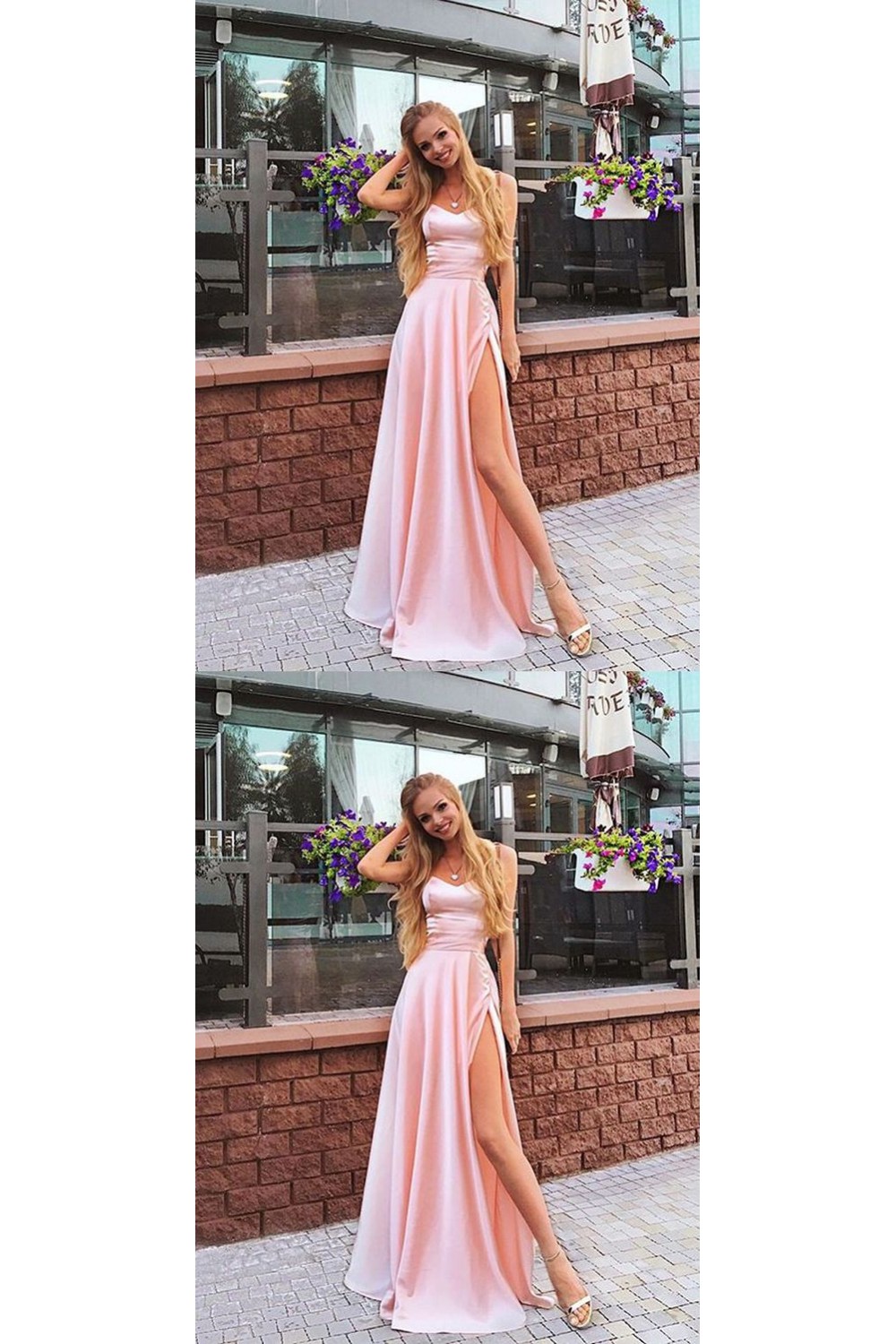 A-Line Long Pink Prom Dress Formal Evening Dresses 601481