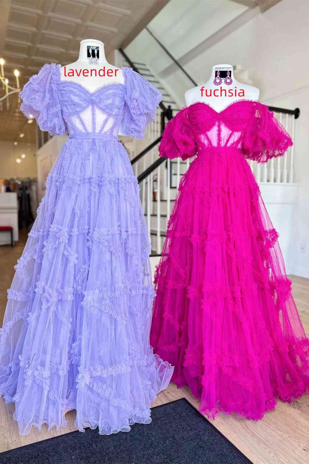 A-Line Long Pink Tulle Off the Shoulder Prom Dresses 801005