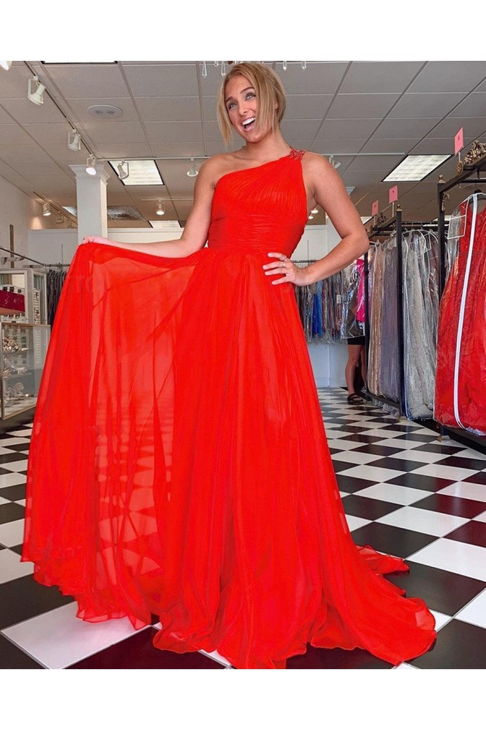 A-Line Long Red One Shoulder Prom Dress Formal Evening Gowns 901232