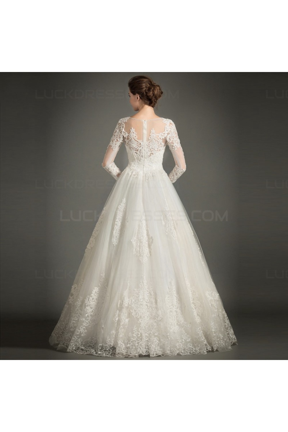 A-Line Long Sleeves Lace Wedding Dresses Bridal Gowns 3030157