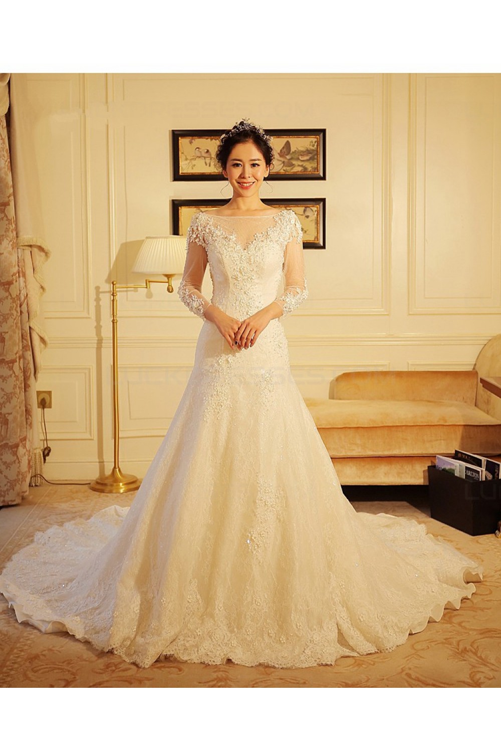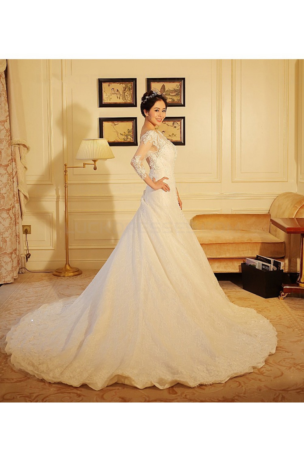 A-Line Long Sleeves Lace Wedding Dresses Bridal Gowns 3030229