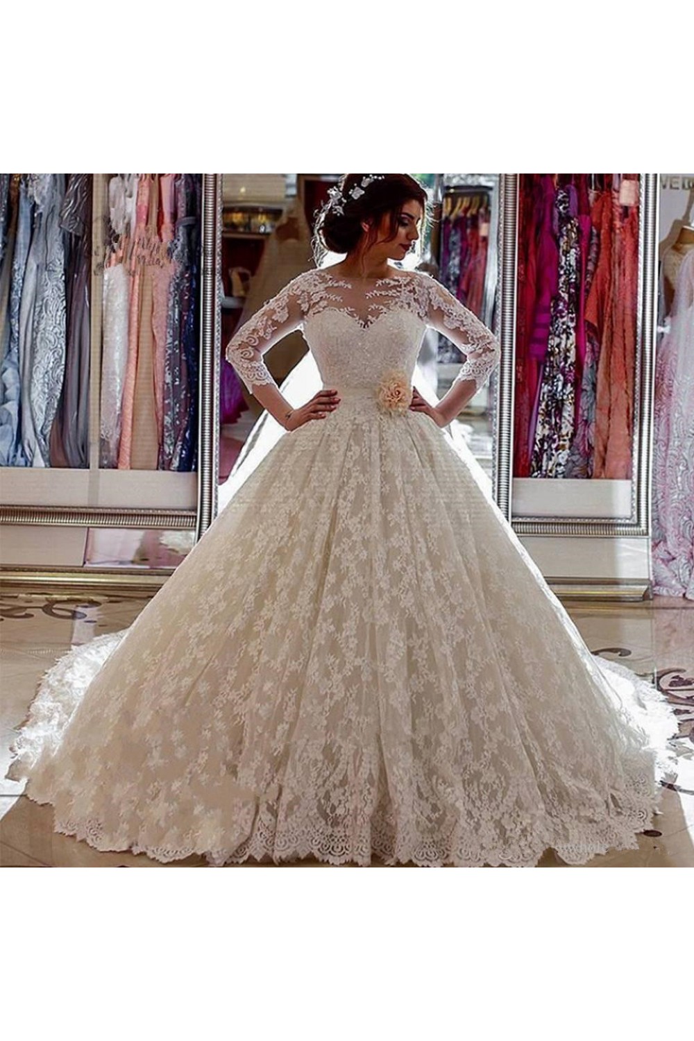 A-Line Long Sleeves Lace Wedding Dresses Bridal Gowns 903280