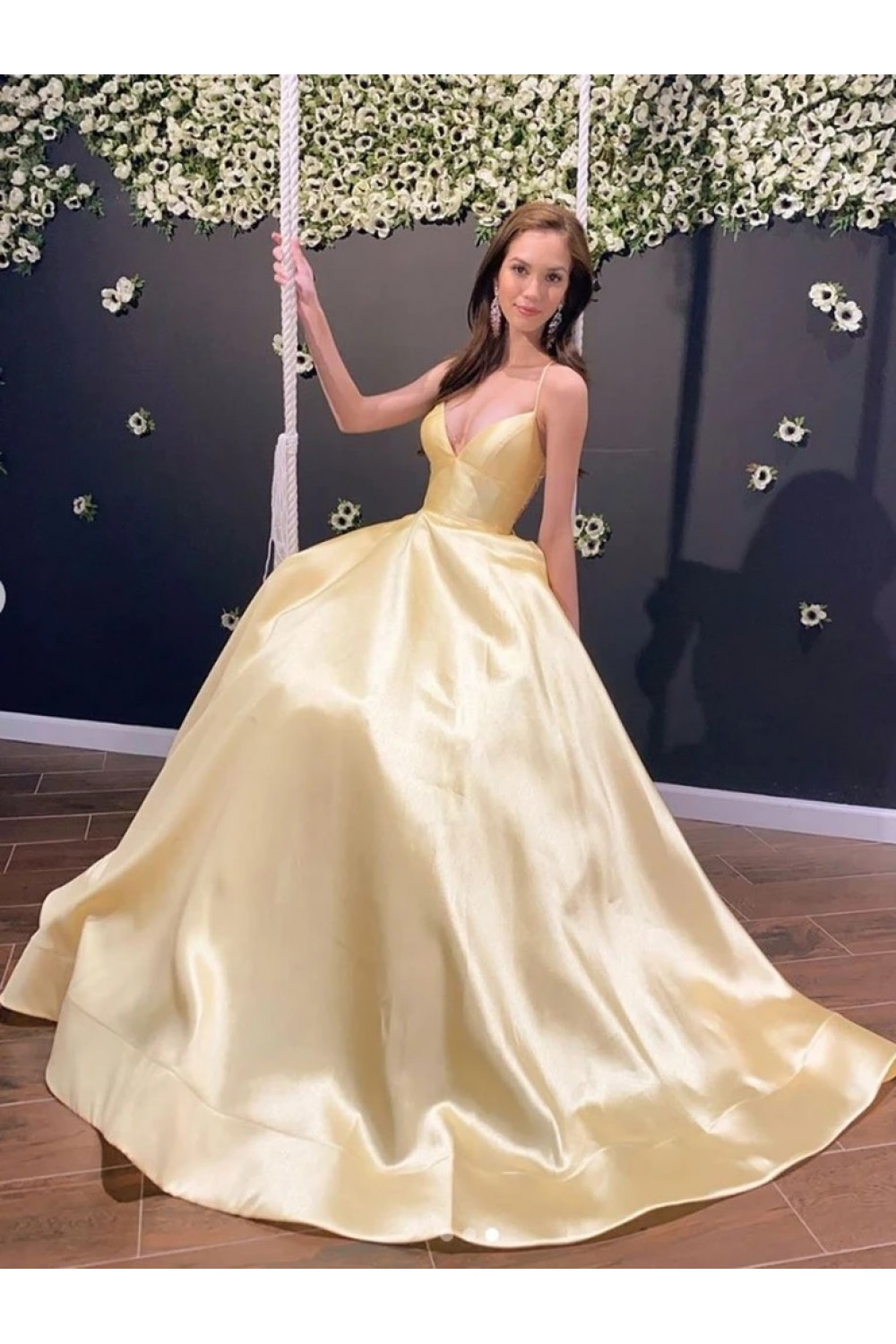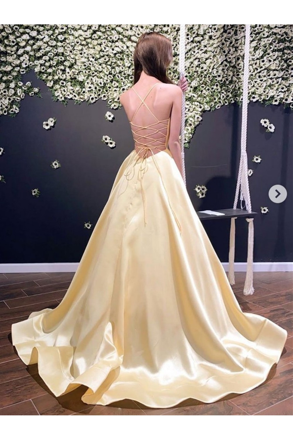 A-Line Long Yellow Satin Prom Dresses Formal Evening Gowns 6011421