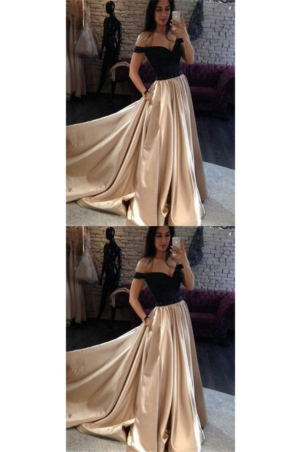 A-Line Off-the-Shoulder Beaded Long Prom Dresses Formal Evening Dresses 601258