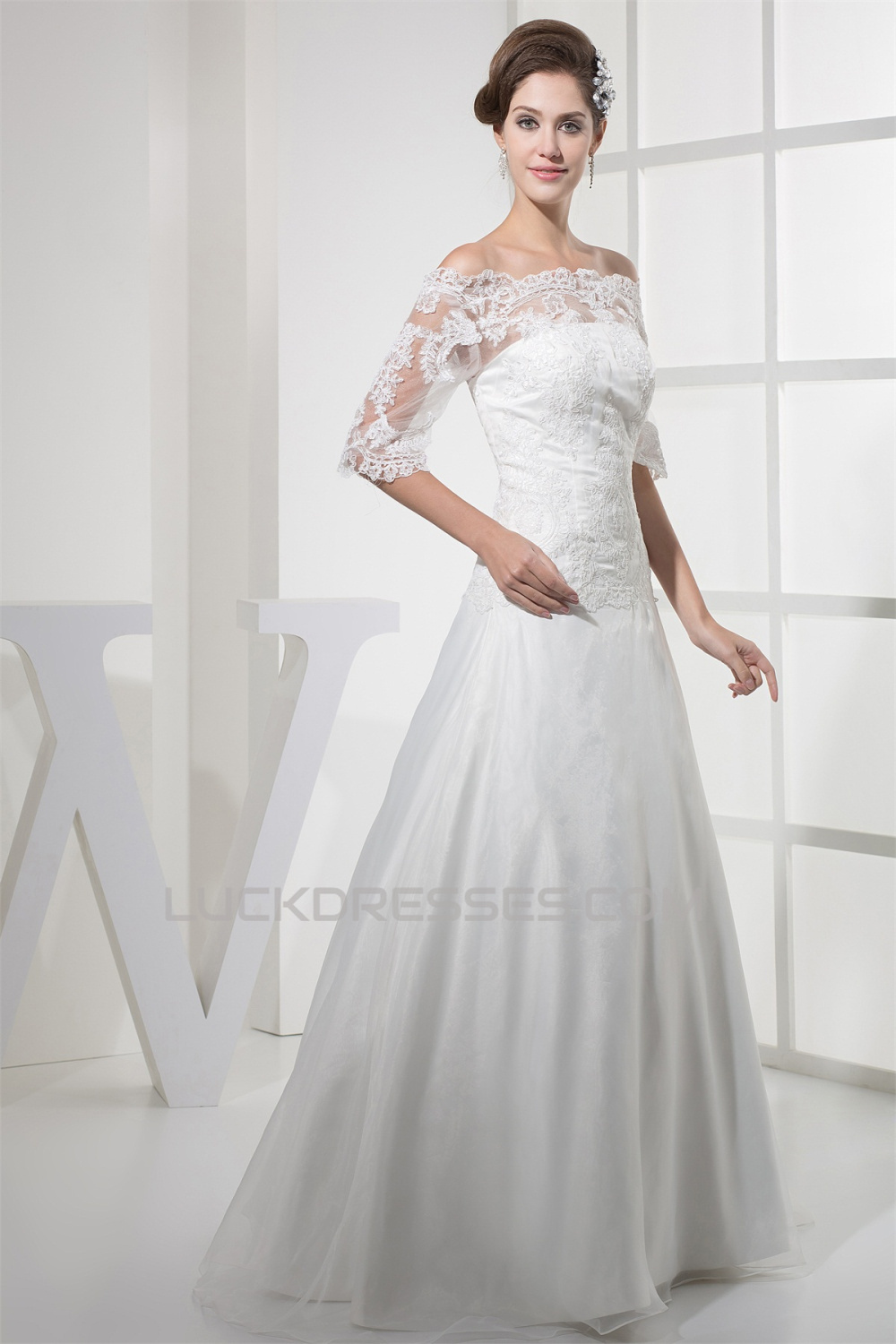 A-Line Off-the-Shoulder Half Elbow Sleeve Floor-Length Sweet Wedding Dresses 2030169