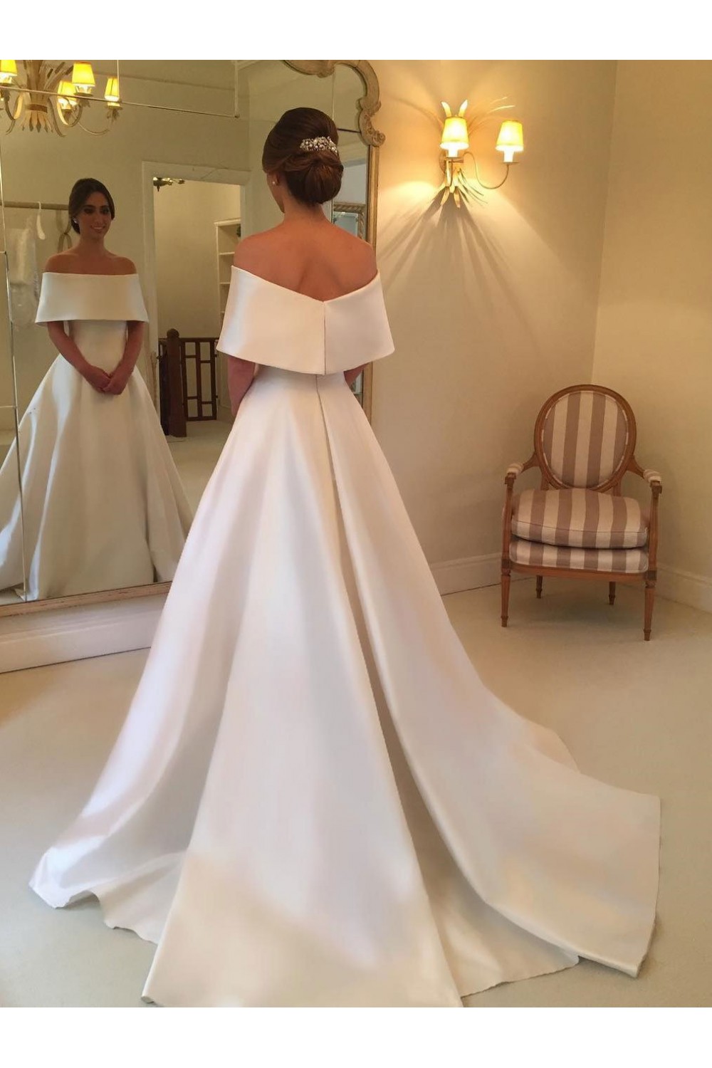A-Line Off the Shoulder Long Satin Wedding Dresses Bridal Gowns 903234