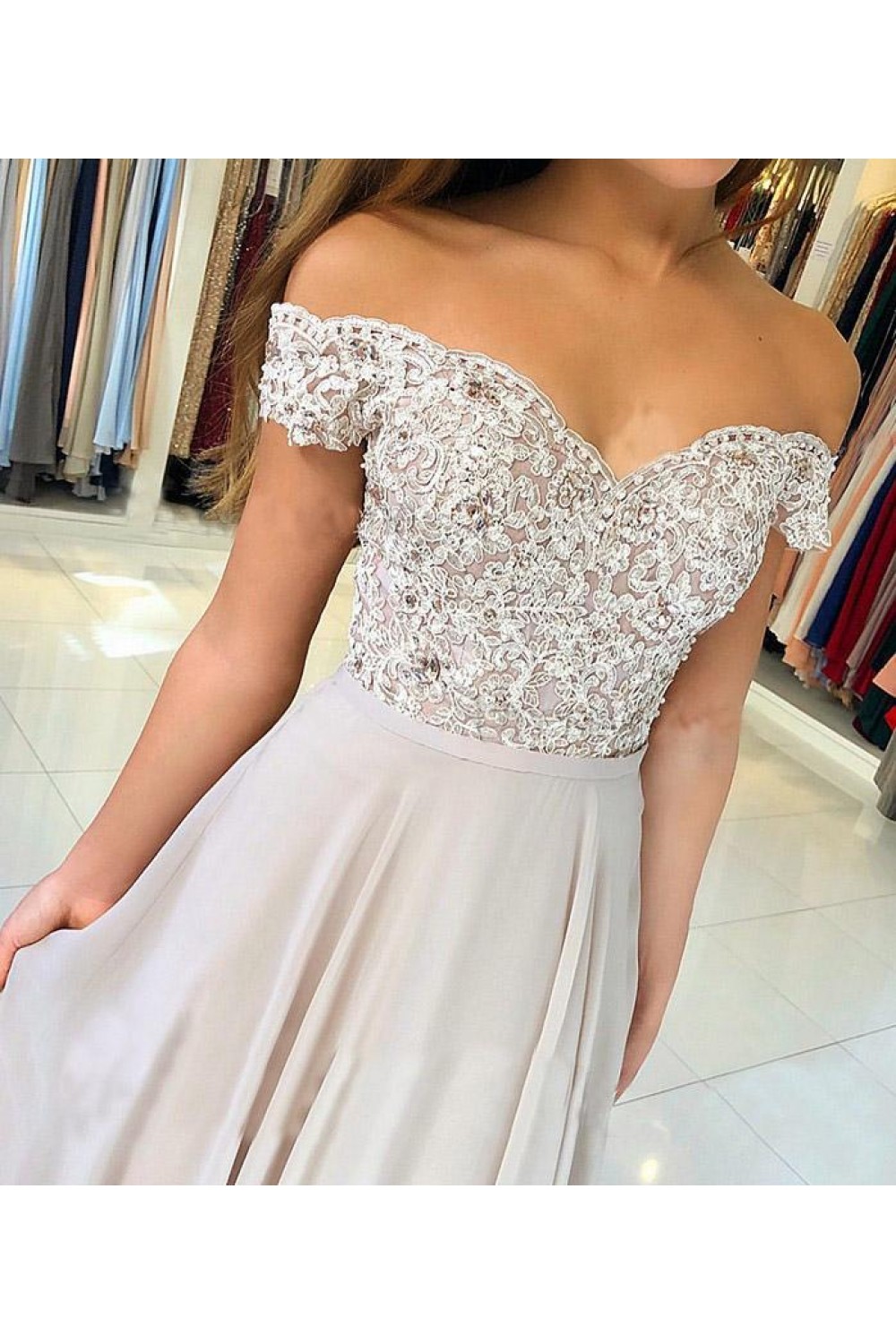 A-Line Off-the-Shoulder Prom Dresses Formal Evening Gowns with Lace Appliques 6011662