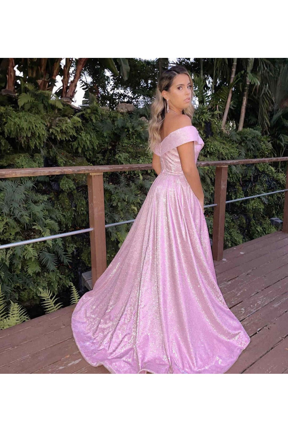 A-Line Off the Shoulder Sparkle Prom Dress Formal Evening Gowns 901408