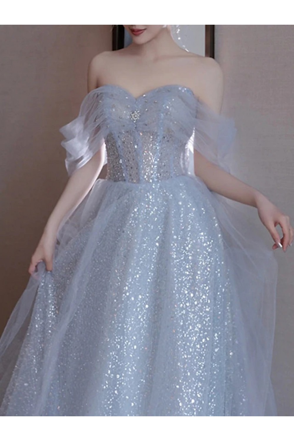 -60% A-Line Off the Shoulder Tulle Prom Dresses 801514