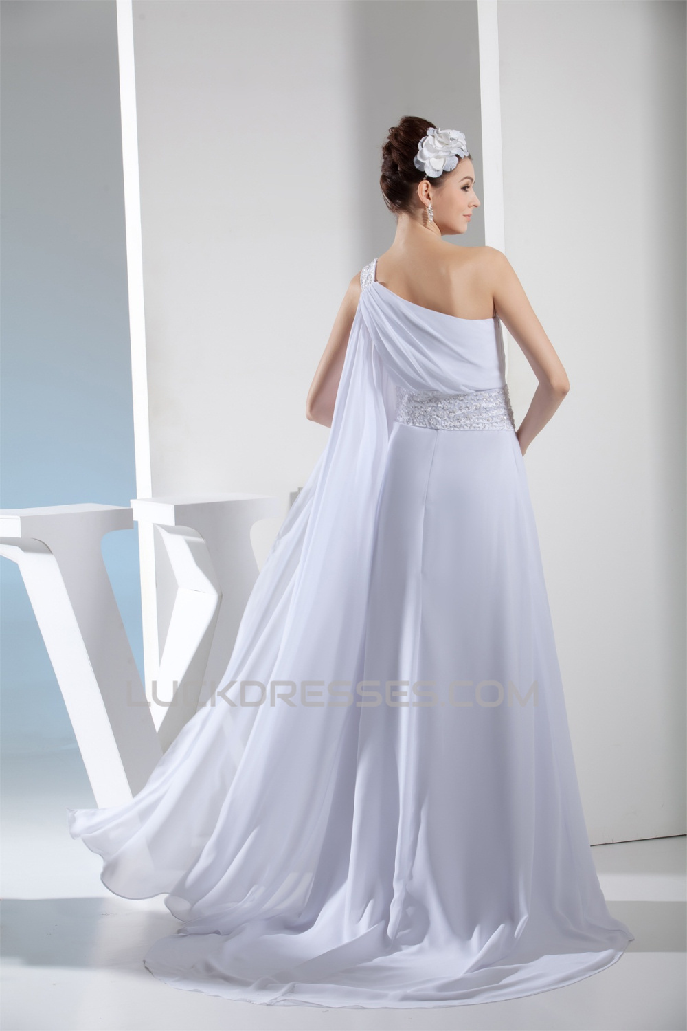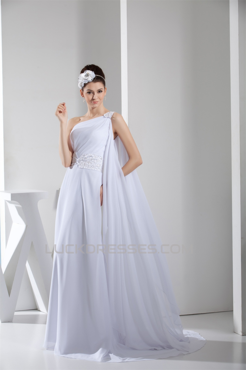 A-Line One-Shoulder Amazing Chiffon Sweep Train Wedding Dresses 2030049