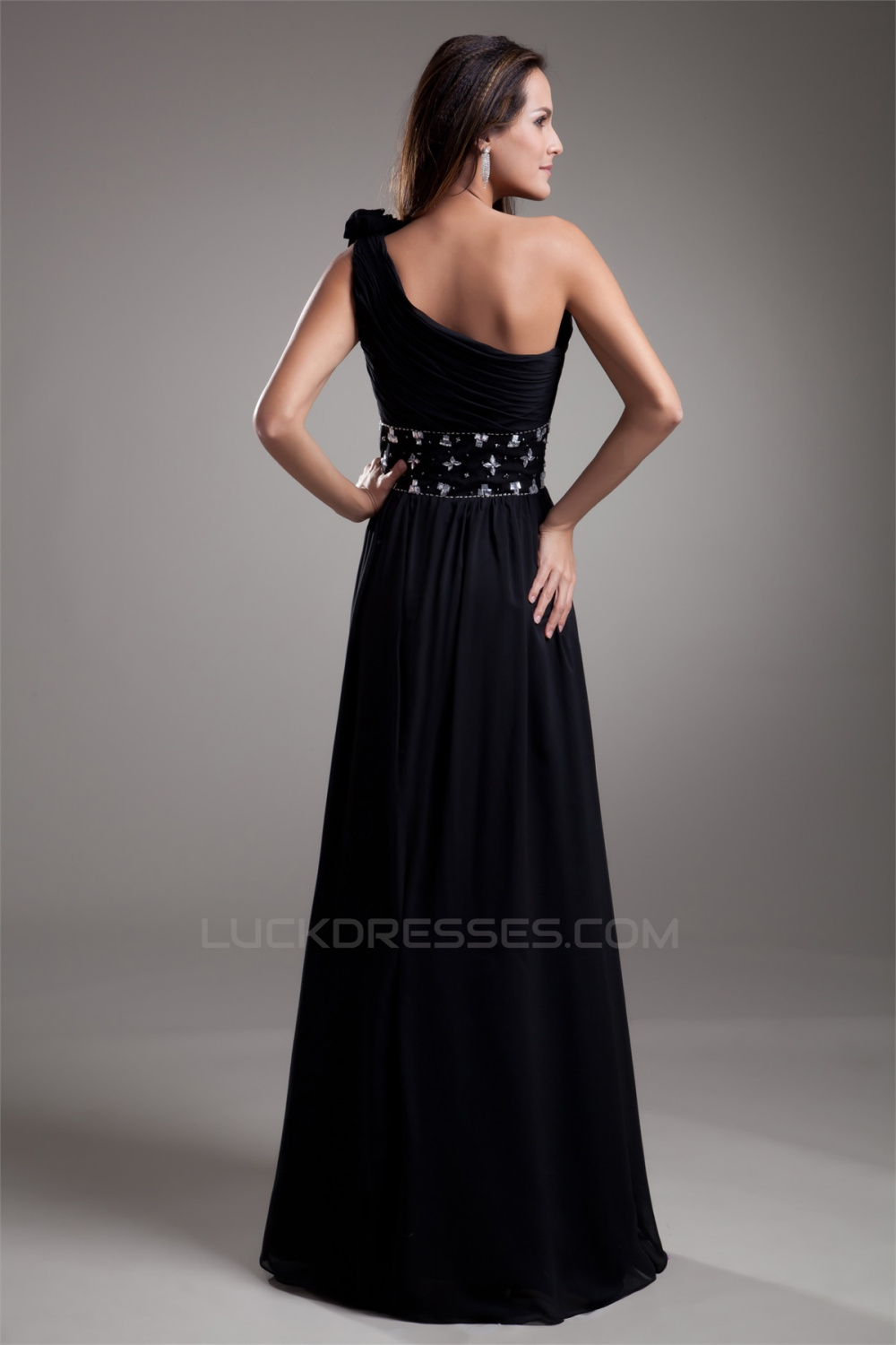 A-Line One-Shoulder Beaded Black Floor-Length Prom/Formal Evening Dresses 02020714