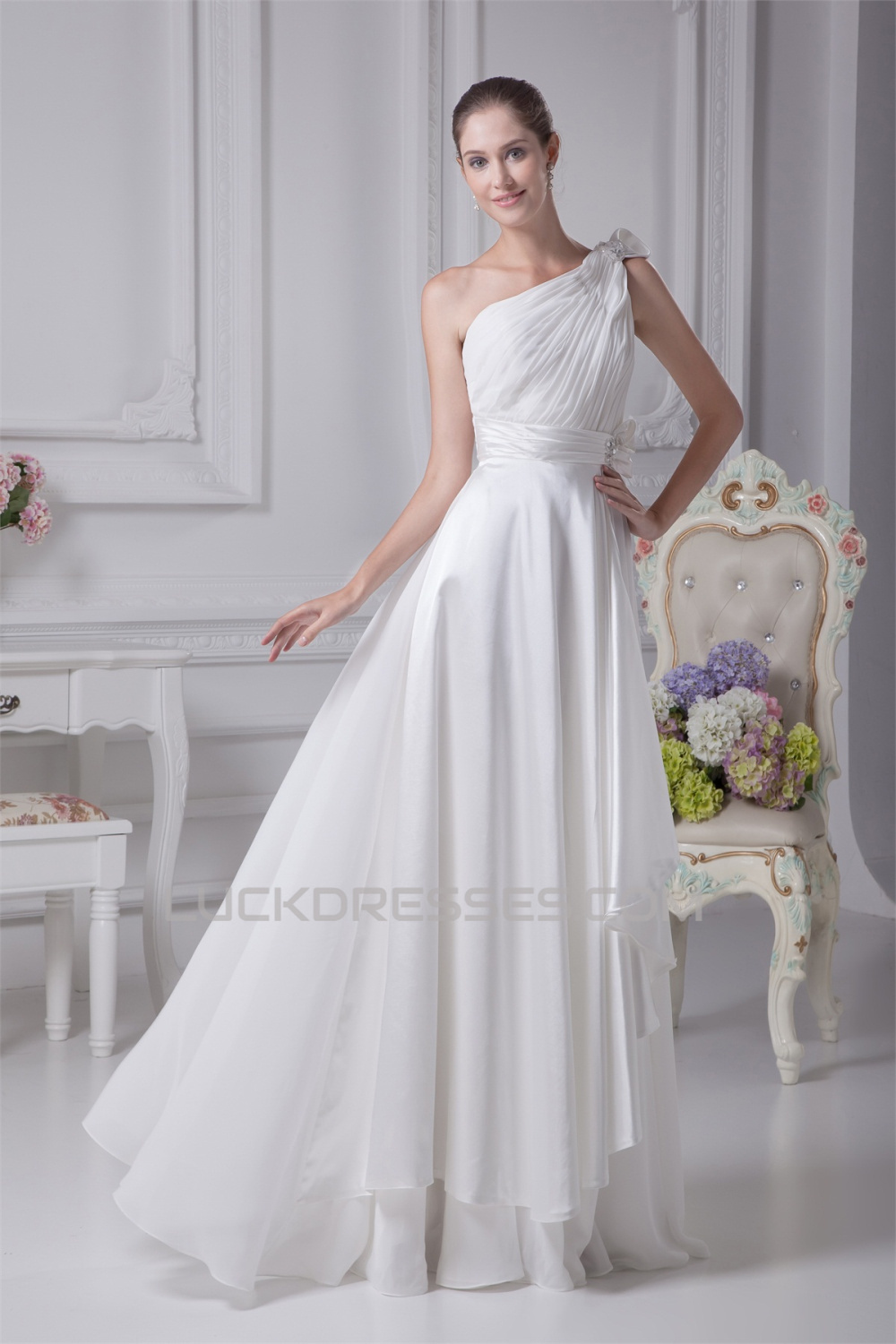 -50% A-Line One-Shoulder Beaded Chiffon Satin Silk like Satin Wedding Dresses 2030098
