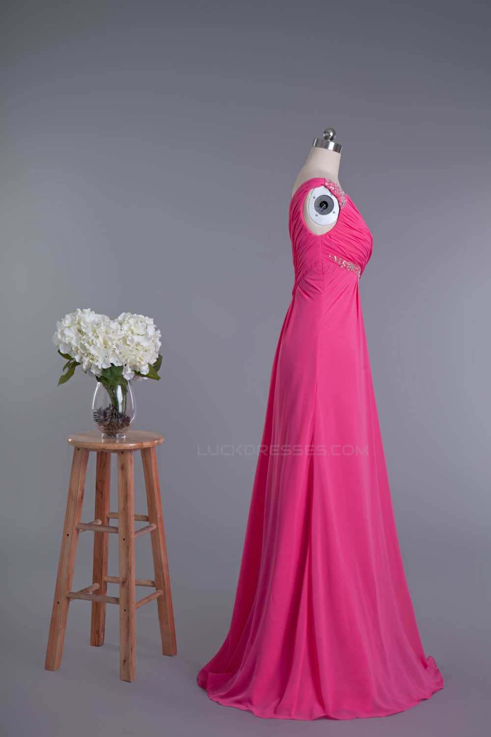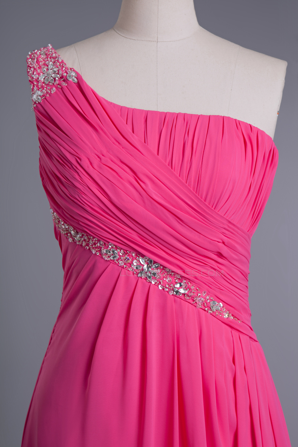 A-Line One-Shoulder Beaded Long Chiffon Prom Evening Formal Dresses ED010960