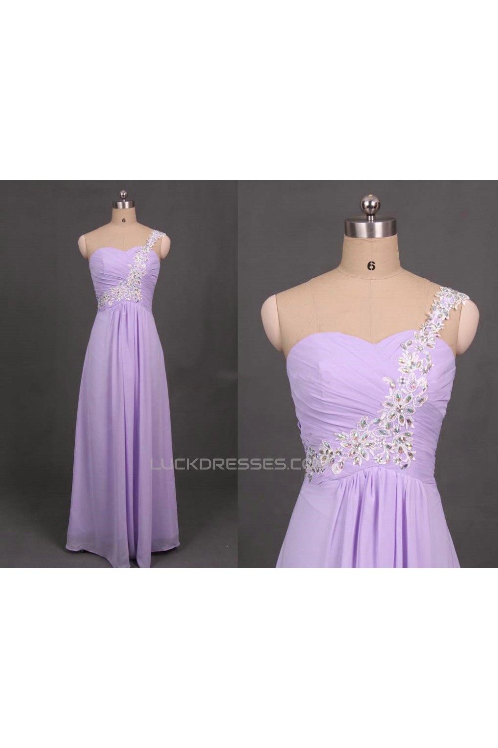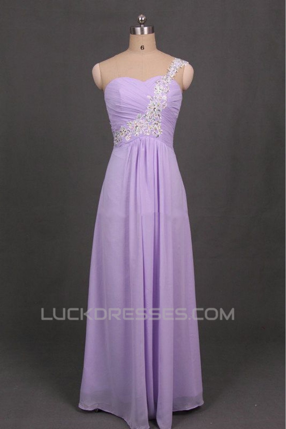 A-Line One-Shoulder Beaded Long Chiffon Prom Evening Formal Dresses ED011104
