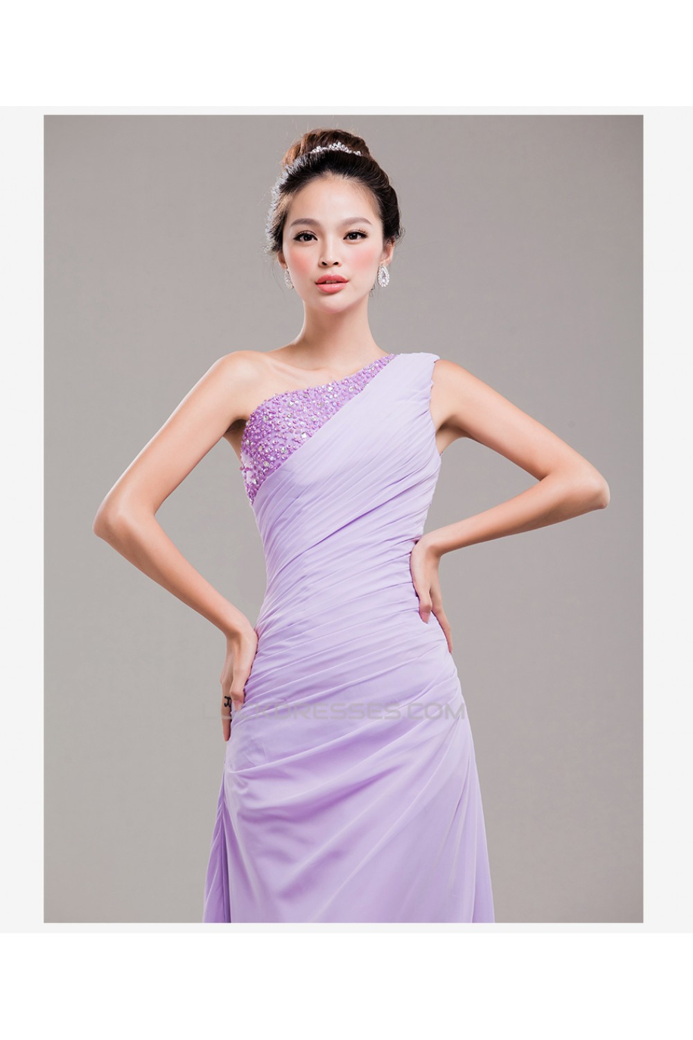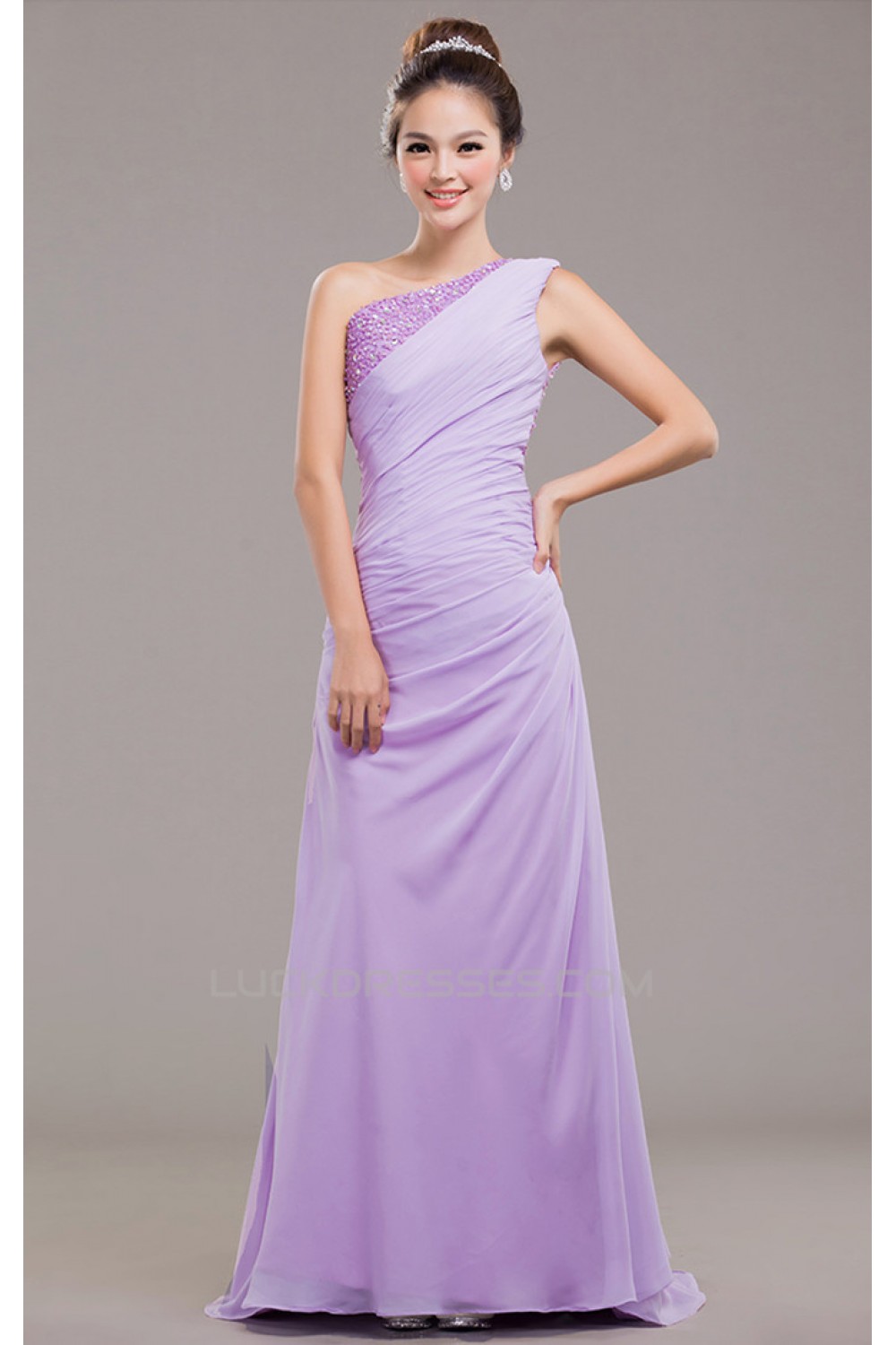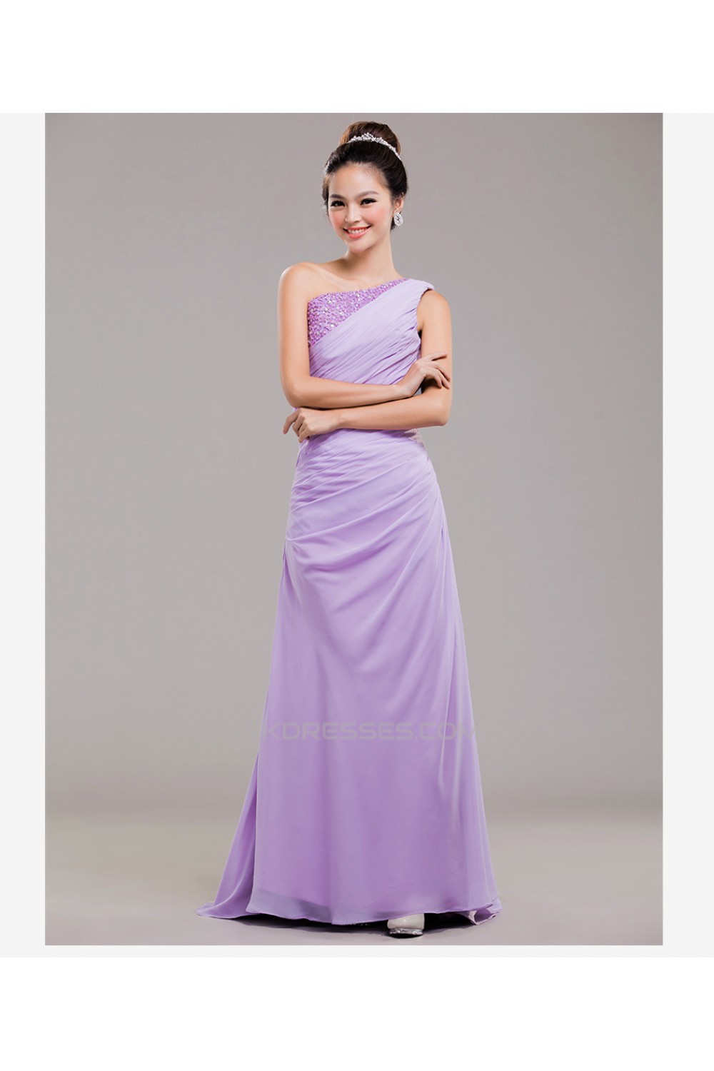A-Line One-Shoulder Beaded Long Chiffon Prom Evening Formal Dresses ED011251
