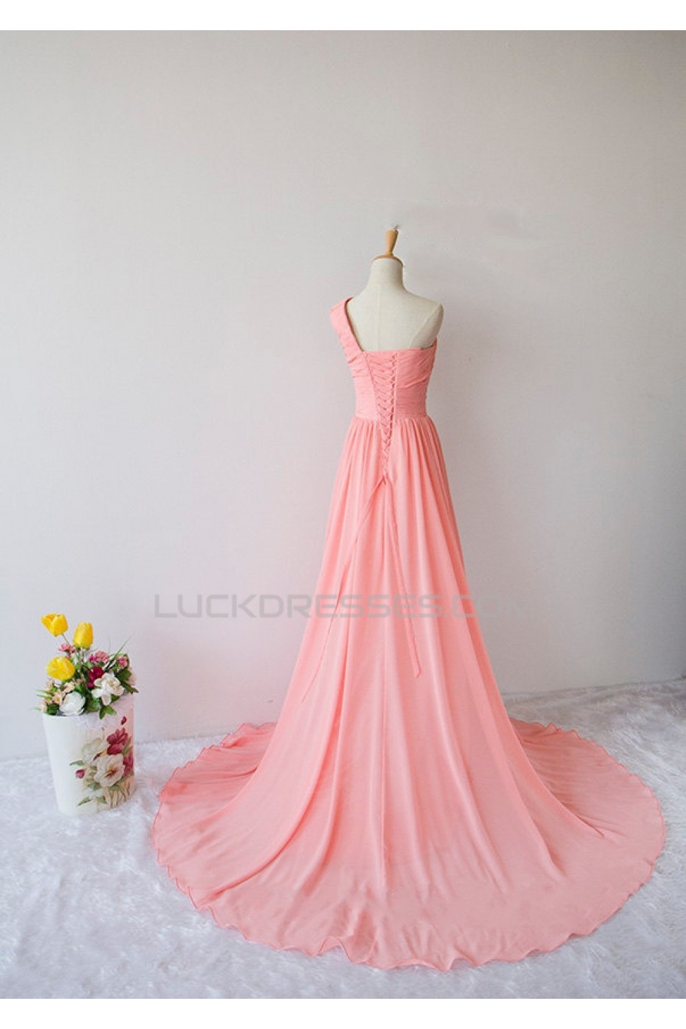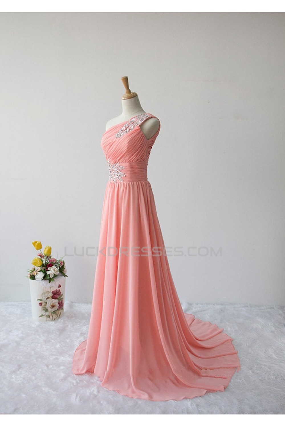 A-Line One-Shoulder Beaded Long Chiffon Prom Evening Formal Dresses ED011604