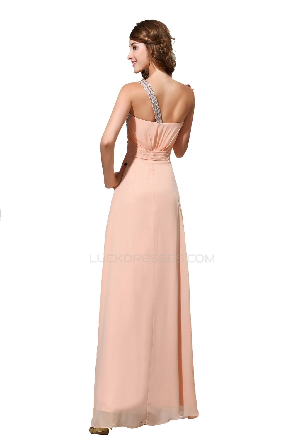 A-Line One-Shoulder Beaded Long Chiffon Prom Evening Formal Party Dresses ED010465
