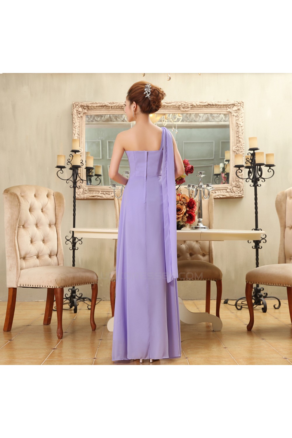 A-Line One-Shoulder Beaded Long Lilac Chiffon Bridesmaid Dresses/Evening Dresses BD010583