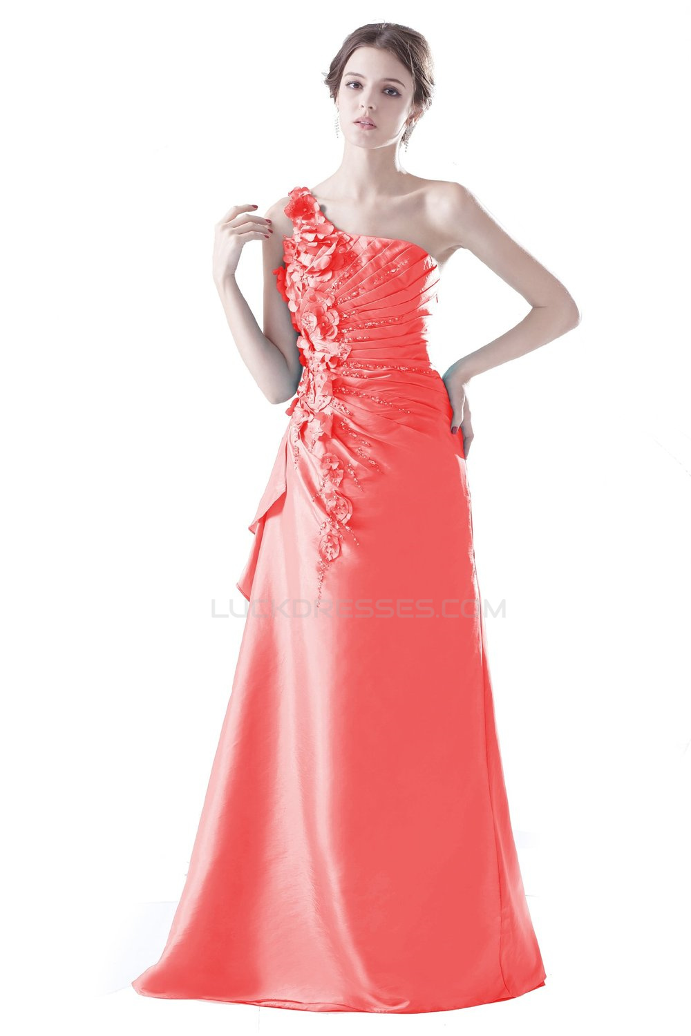A-Line One-Shoulder Beaded Long Prom Evening Formal Party Dresses ED010301