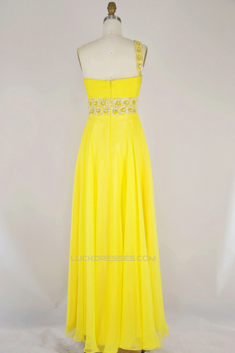 -60% A-Line One-Shoulder Beaded Long Yellow Chiffon Prom Evening Formal Dresses ED011165
