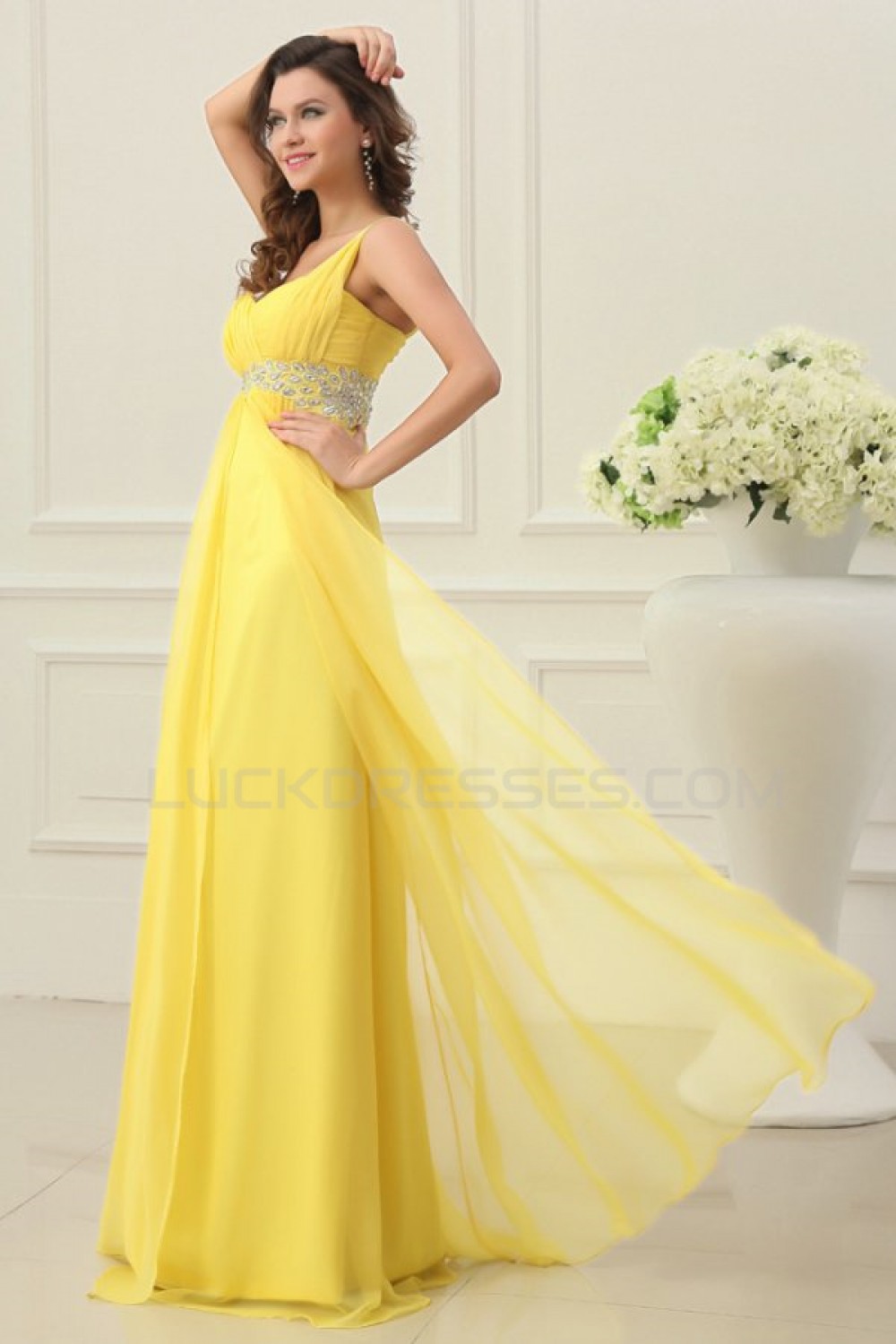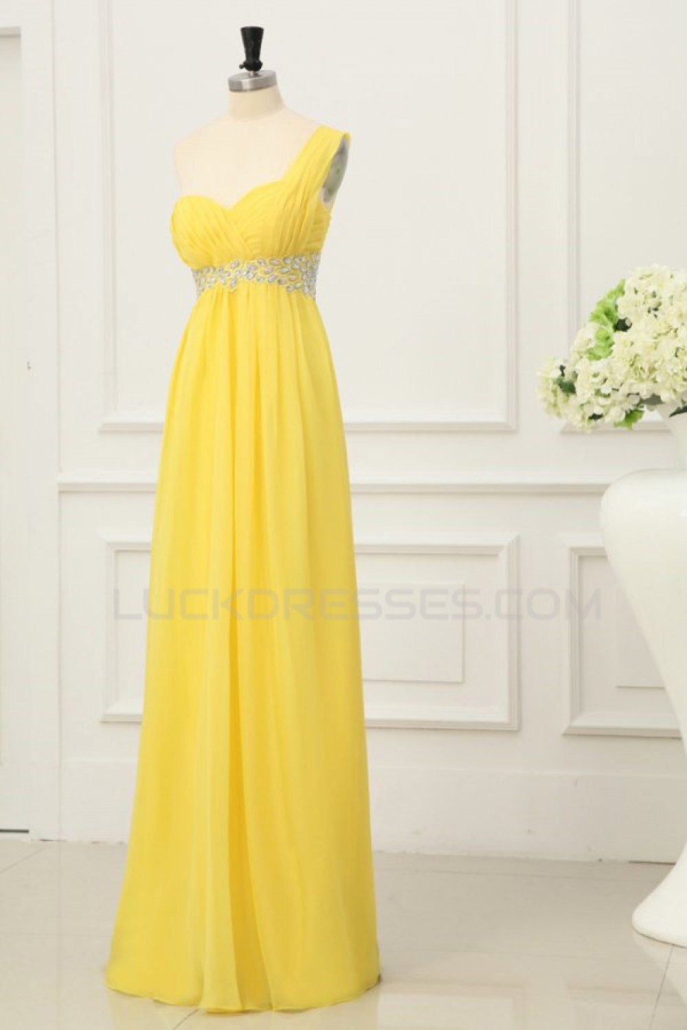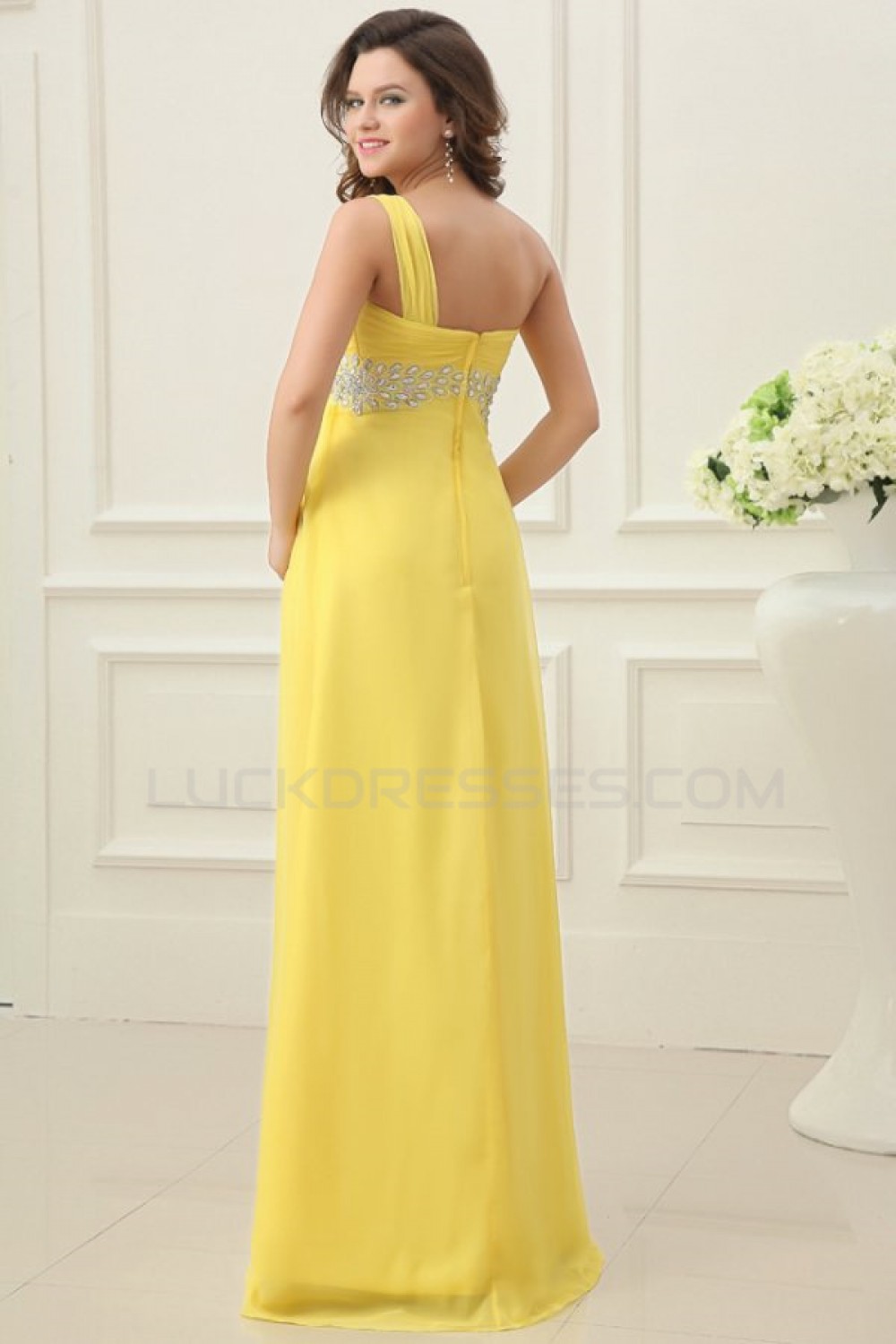 A-Line One-Shoulder Beaded Long Yellow Chiffon Prom Evening Formal Party Dresses/Maternity Evening Dresses ED010199