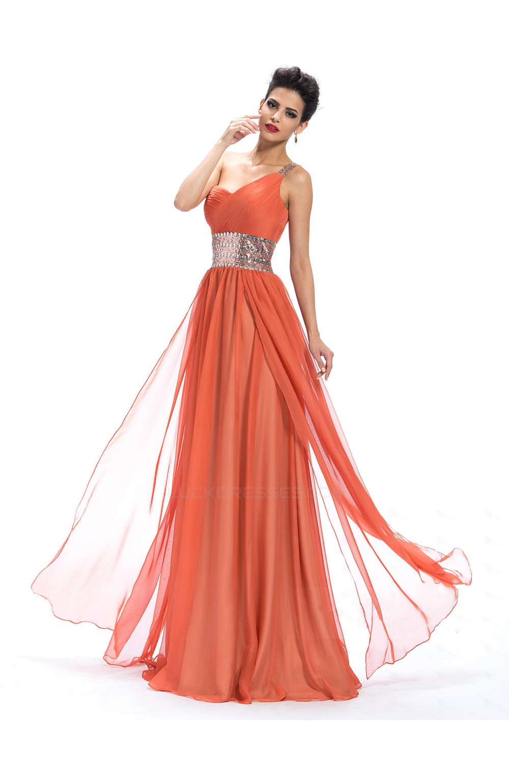 A-Line One-Shoulder Beaded Sequin Long Chiffon Prom Evening Formal Party Dresses ED010657