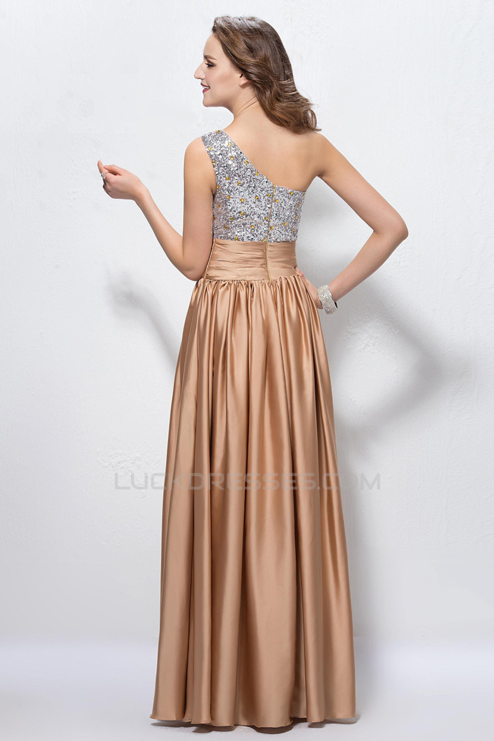 A-Line One-Shoulder Beaded Sequins Long Prom Evening Formal Party Dresses ED010597