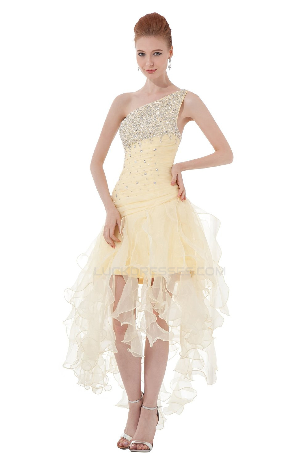 A-Line One-Shoulder Beaded Short Yellow Prom Evening Formal Party Dresses ED010484