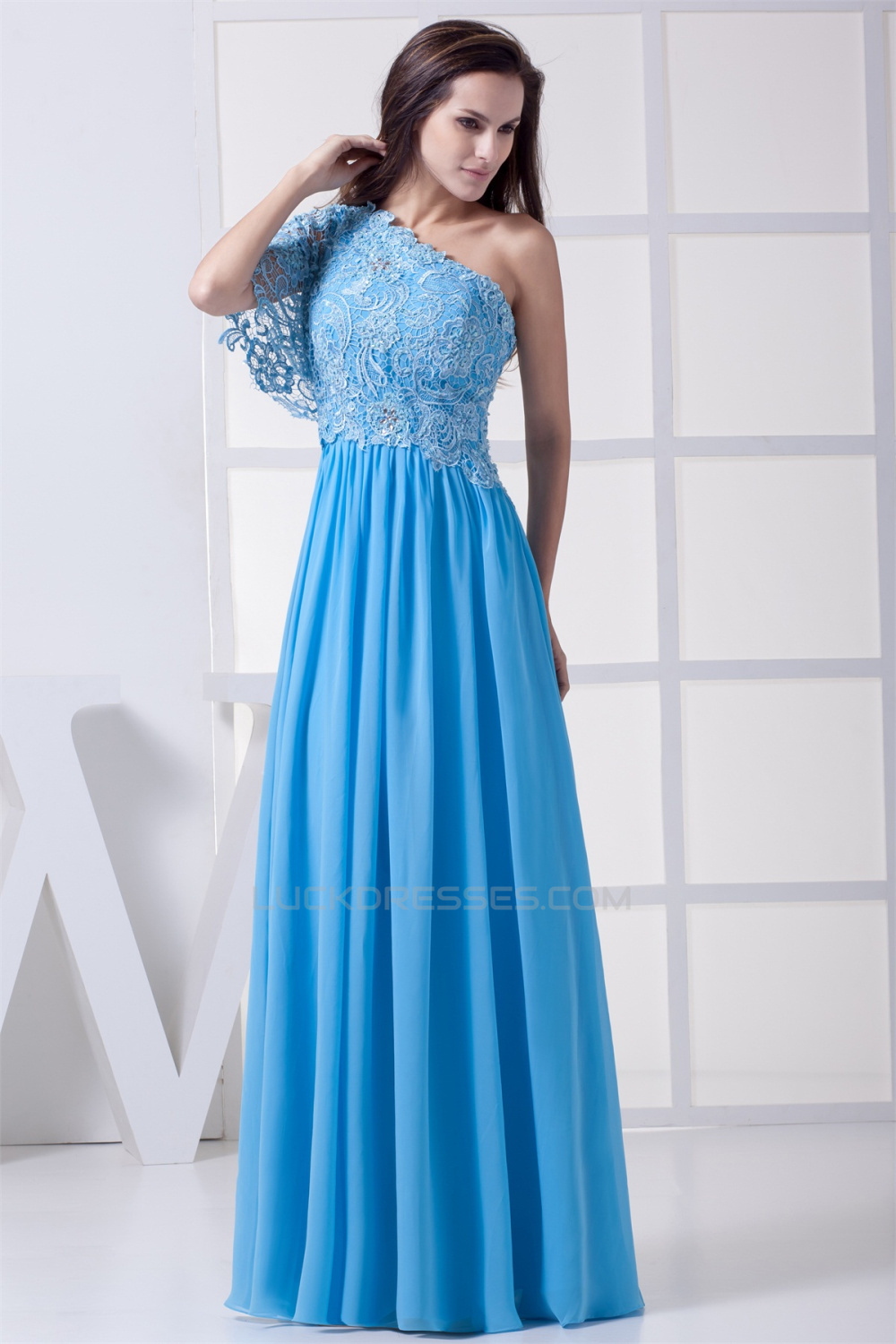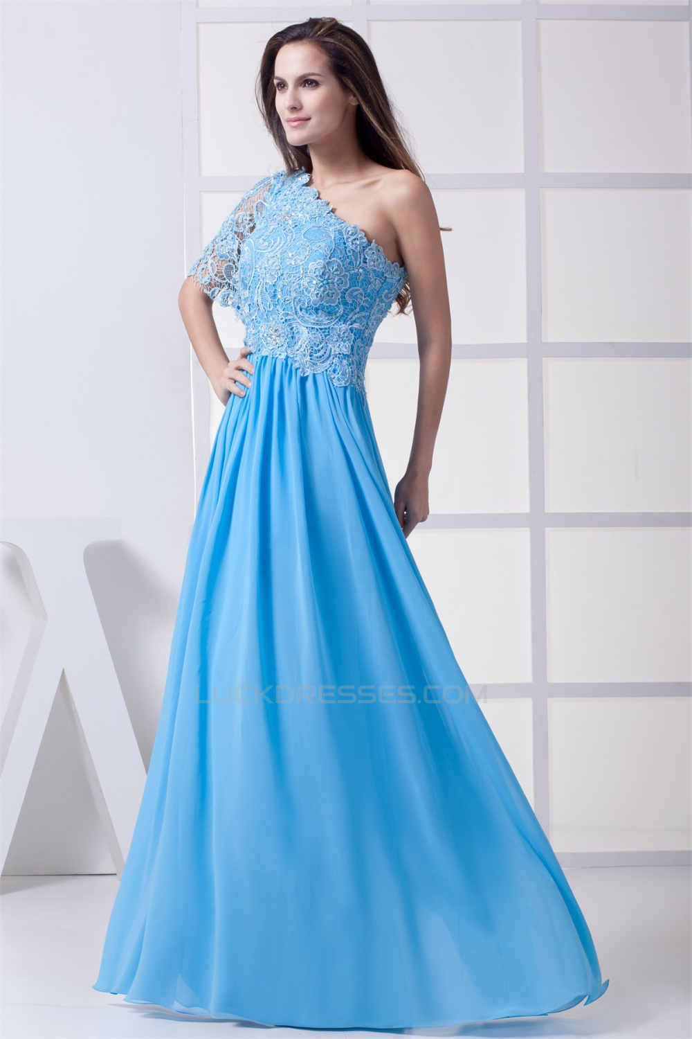 A-Line One-Shoulder Floor-Length Chiffon Lace Long Bridesmaid Dresses 02010070