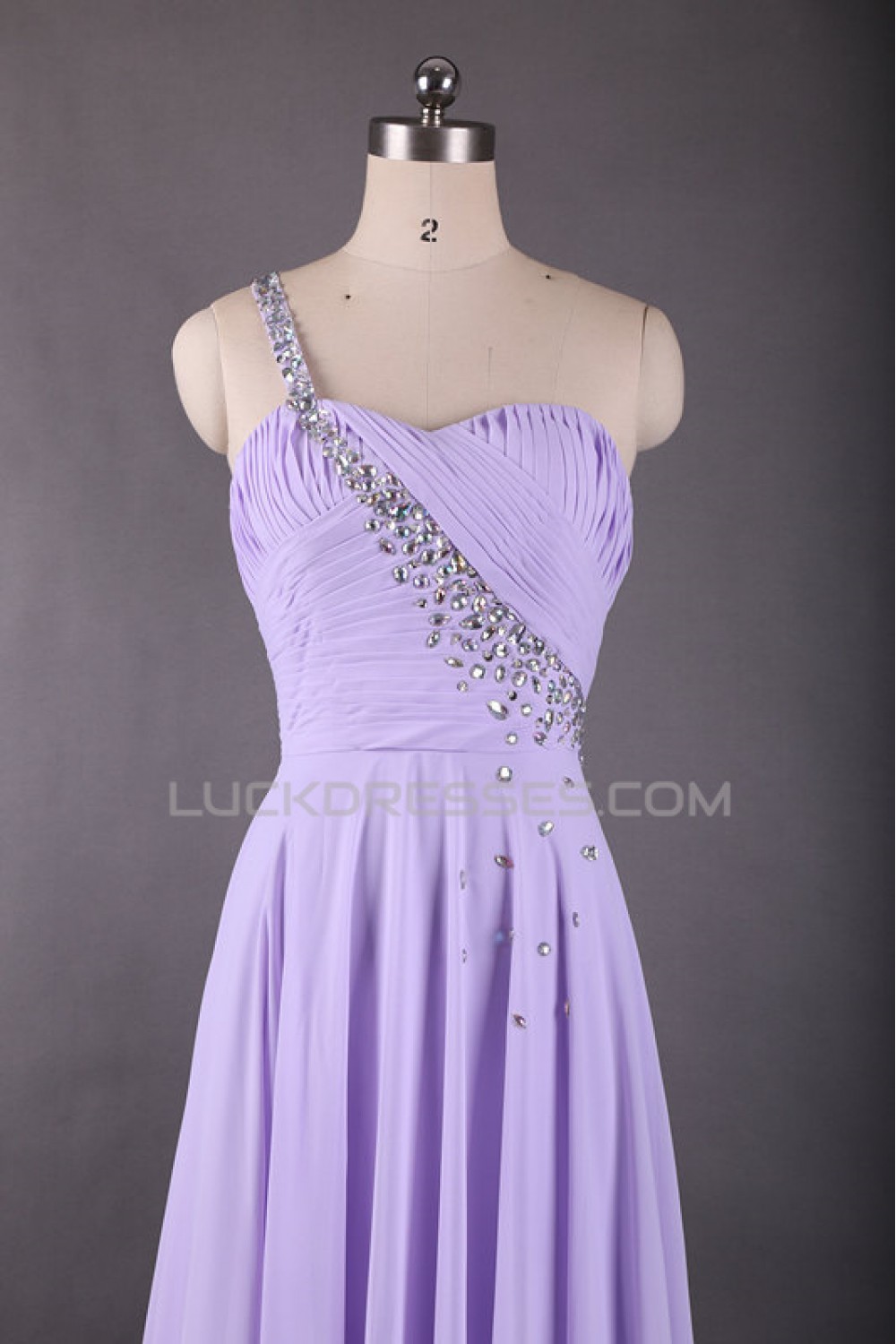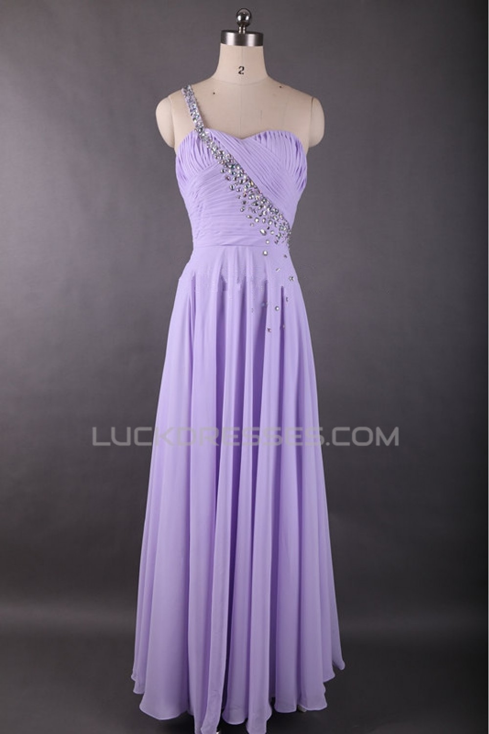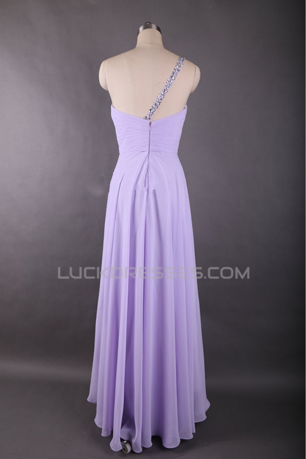 A-Line One-Shoulder Lilac Long Chiffon Prom Evening Formal Dresses ED011613