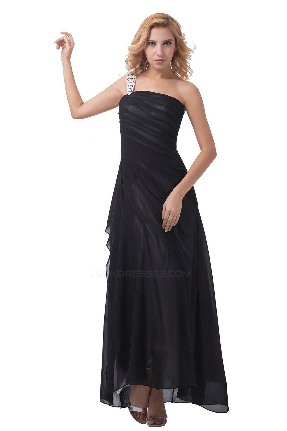 -55% A-Line One-Shoulder Long Black Chiffon Bridesmaid Dresses/Wedding Party Dresses BD010081